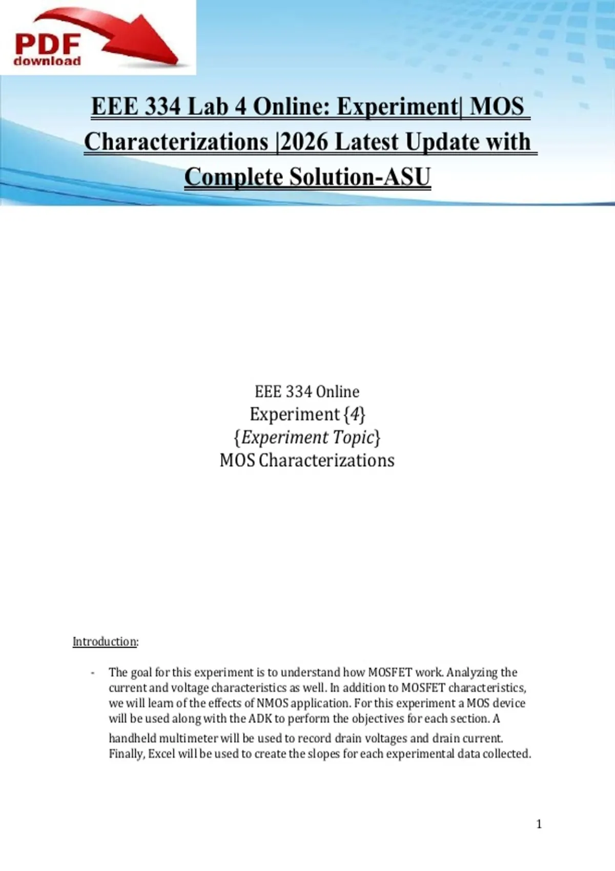 - The goal for this experiment is to understand how MOSFET work. Analyzing the
