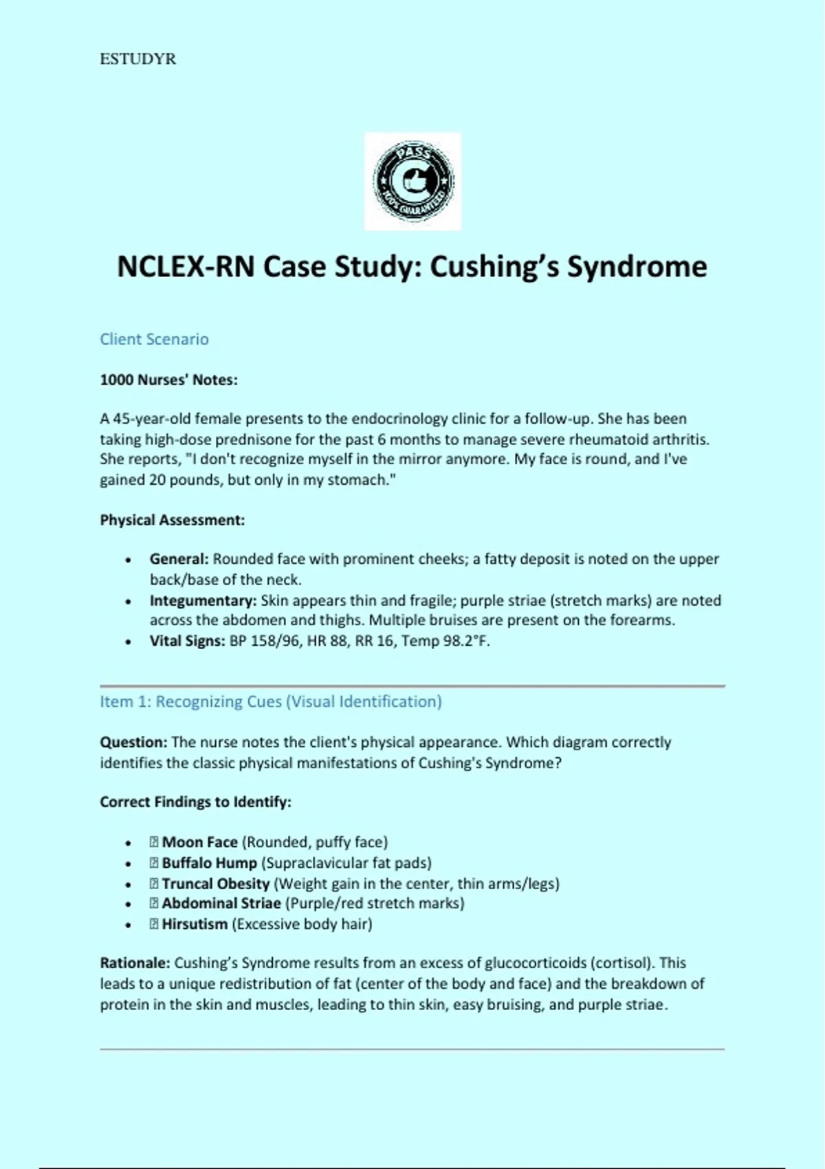 NCLEX-RN Case Study: Cushing’s Syndrome