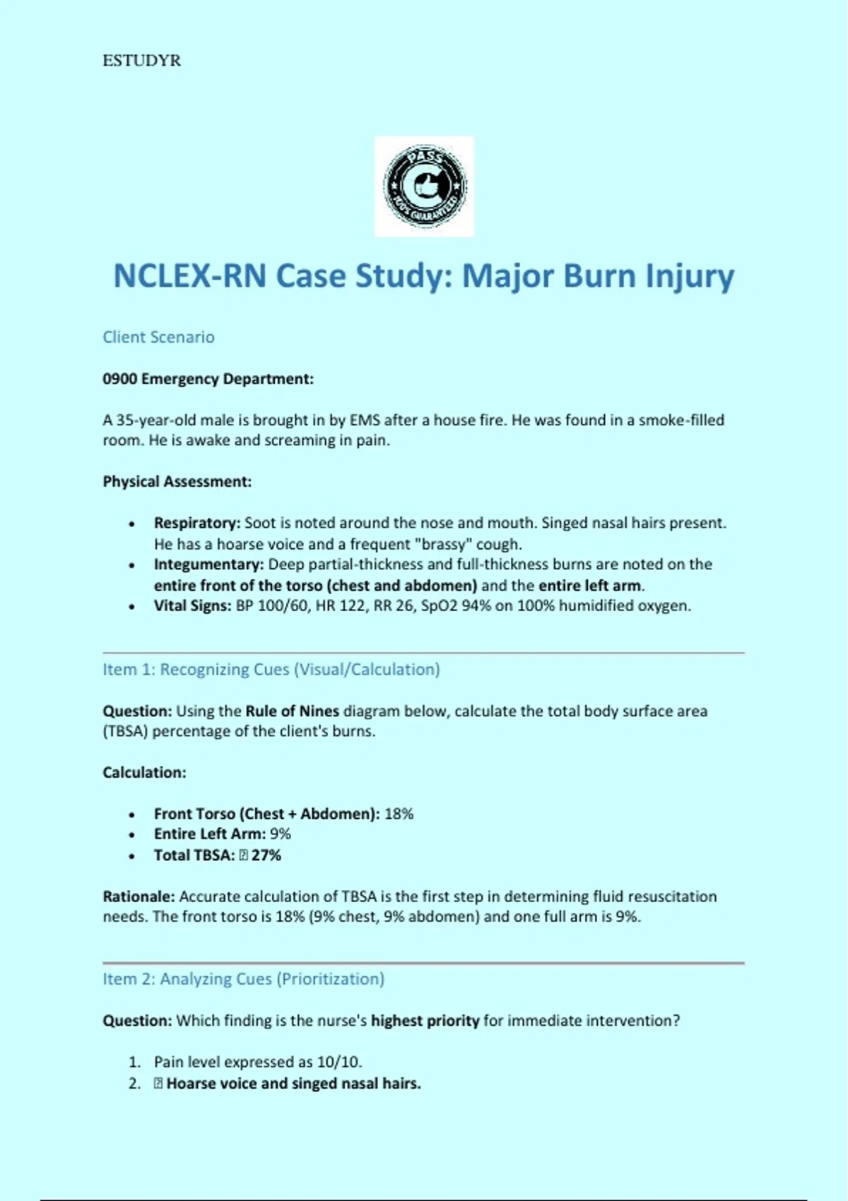 NCLEX-RN Case Study: Major Burn Injury