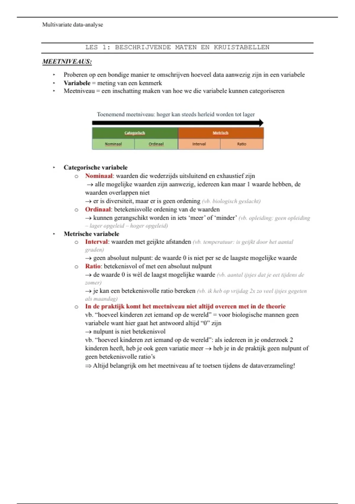 o In de praktijk komt het meetniveau niet altijd overeen met in de theorie