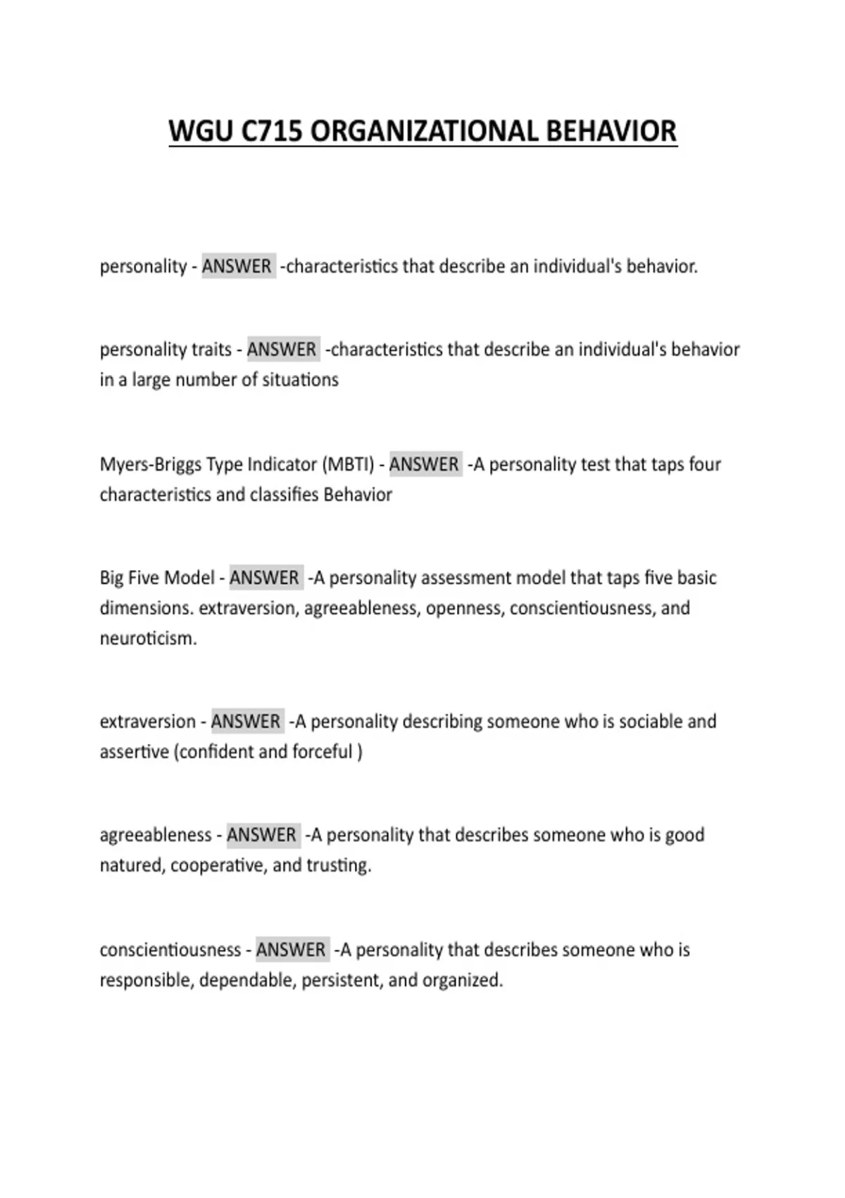 WGU C715 ORGANIZATIONAL BEHAVIOR