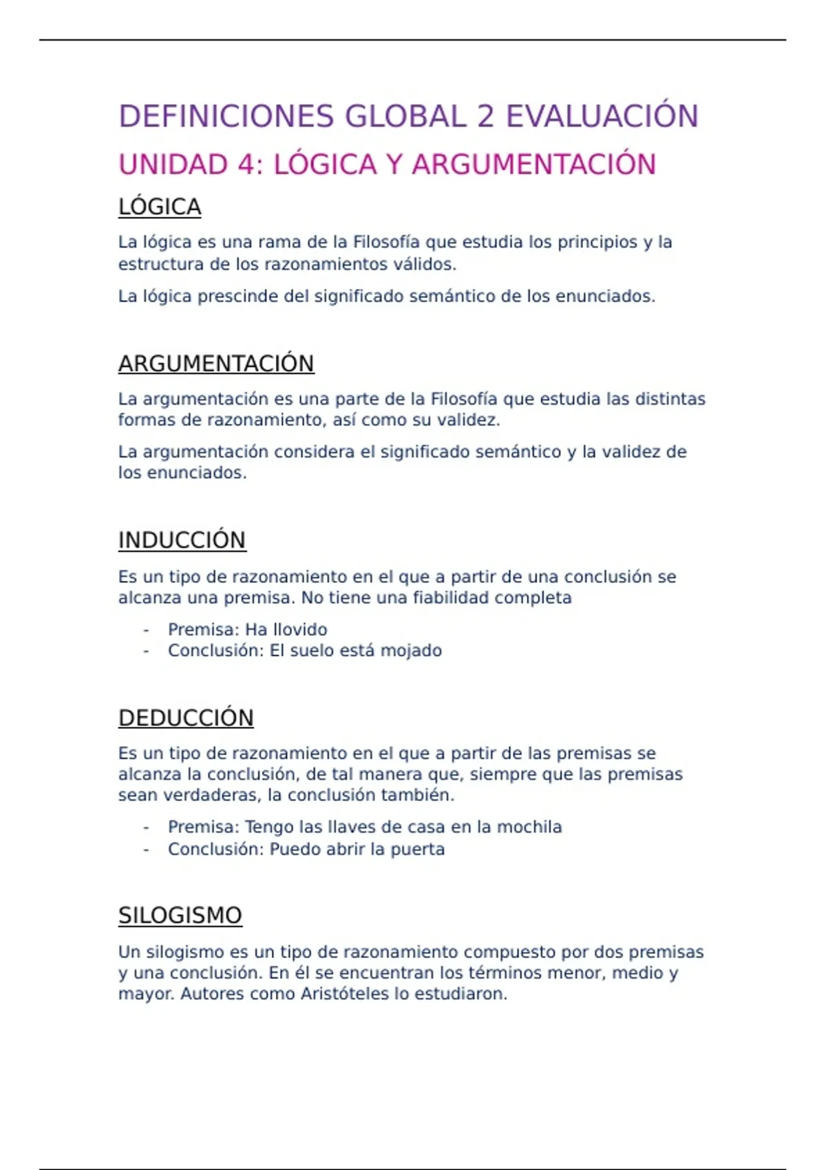 UNIDAD 4: LÓGICA Y ARGUMENTACIÓN