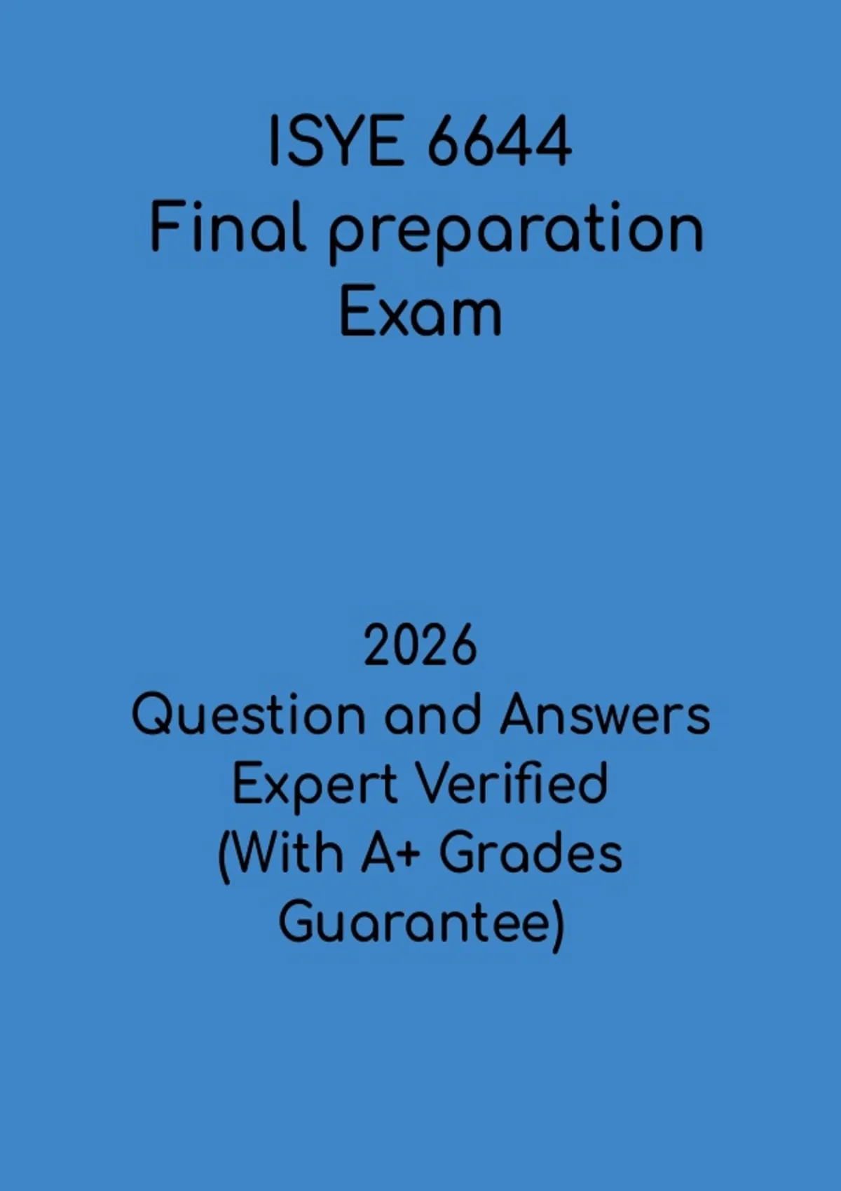 Prepare effectively with the ISYE 6644 Final Exam Prep PDF, a comprehensive study resource for students in operations research and analytics courses. This document includes exam-style questions with answers covering key topics such as optimization, probability models, simulation, and decision analysis. Ideal for final revision and self-assessment, this guide helps reinforce essential concepts, improve problem-solving skills, and build confidence for success in your ISYE 6644 final exam.