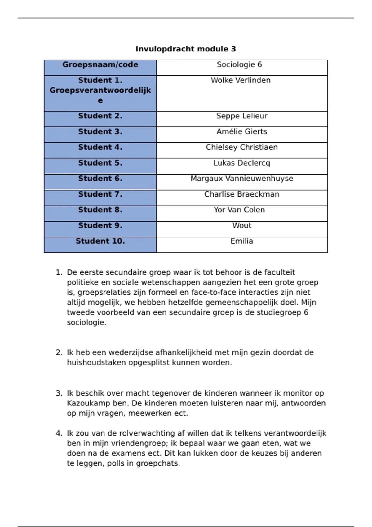 tweede voorbeeld van een secundaire groep is de studiegroep 6