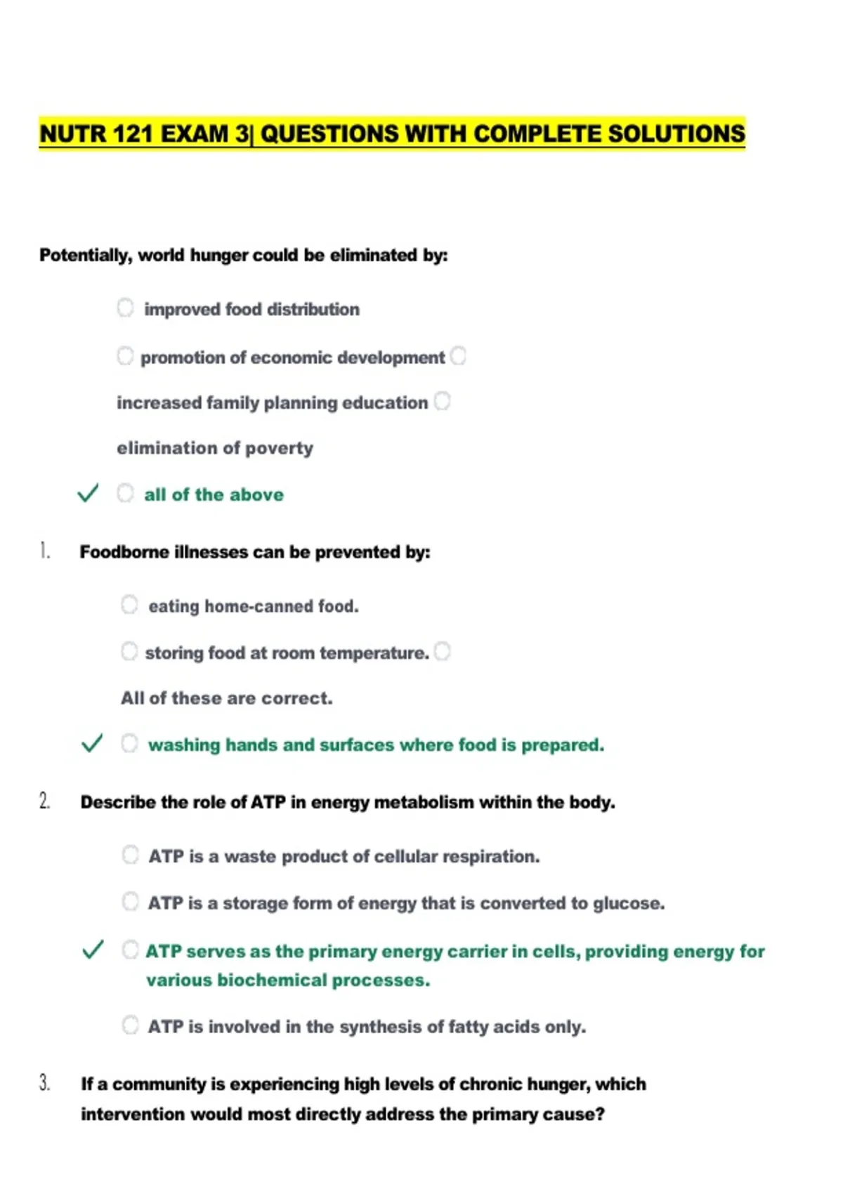 NUTR 121 EXAM 3| QUESTIONS WITH COMPLETE SOLUTIONS