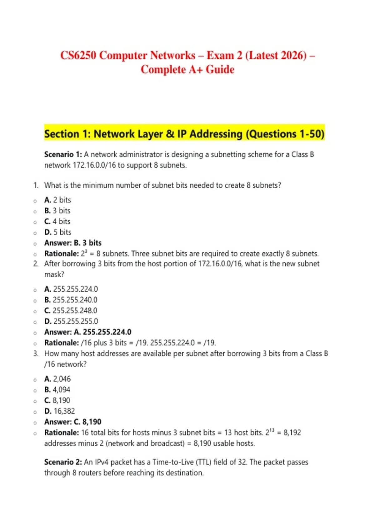 Section 1: Network Layer & IP Addressing (Questions 1-50)