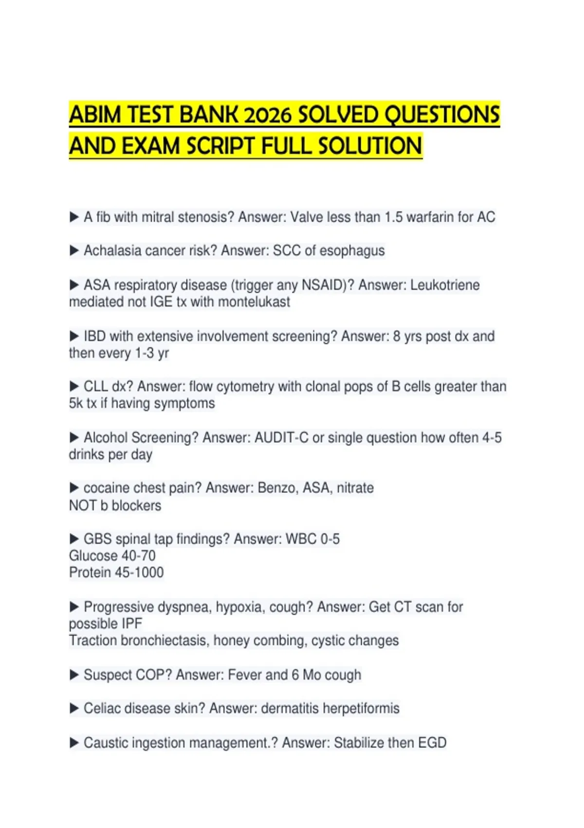 ABIM TEST BANK 2026 SOLVED QUESTIONS