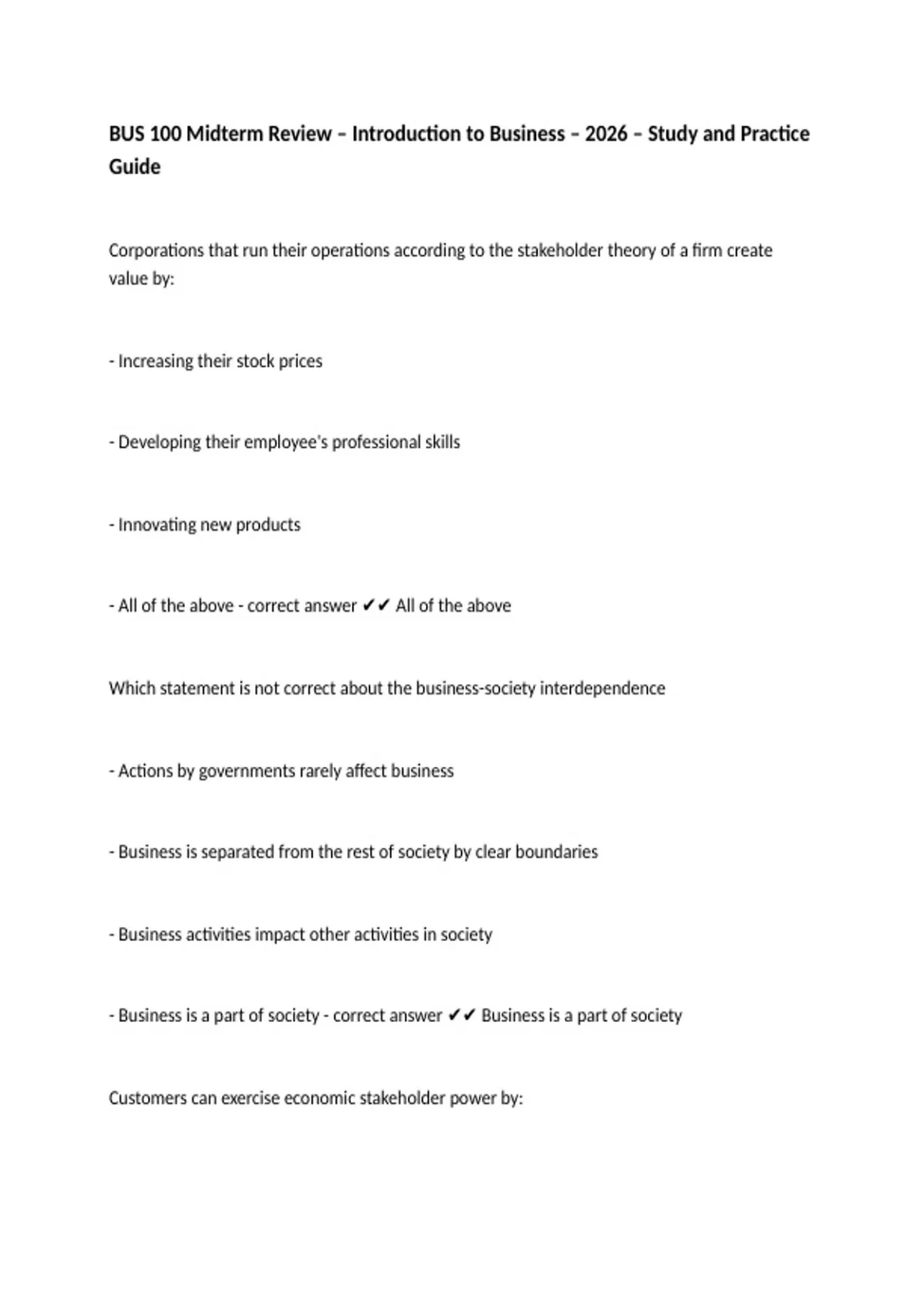 - Business is a part of society - correct answer ✔✔ Business is a part of society