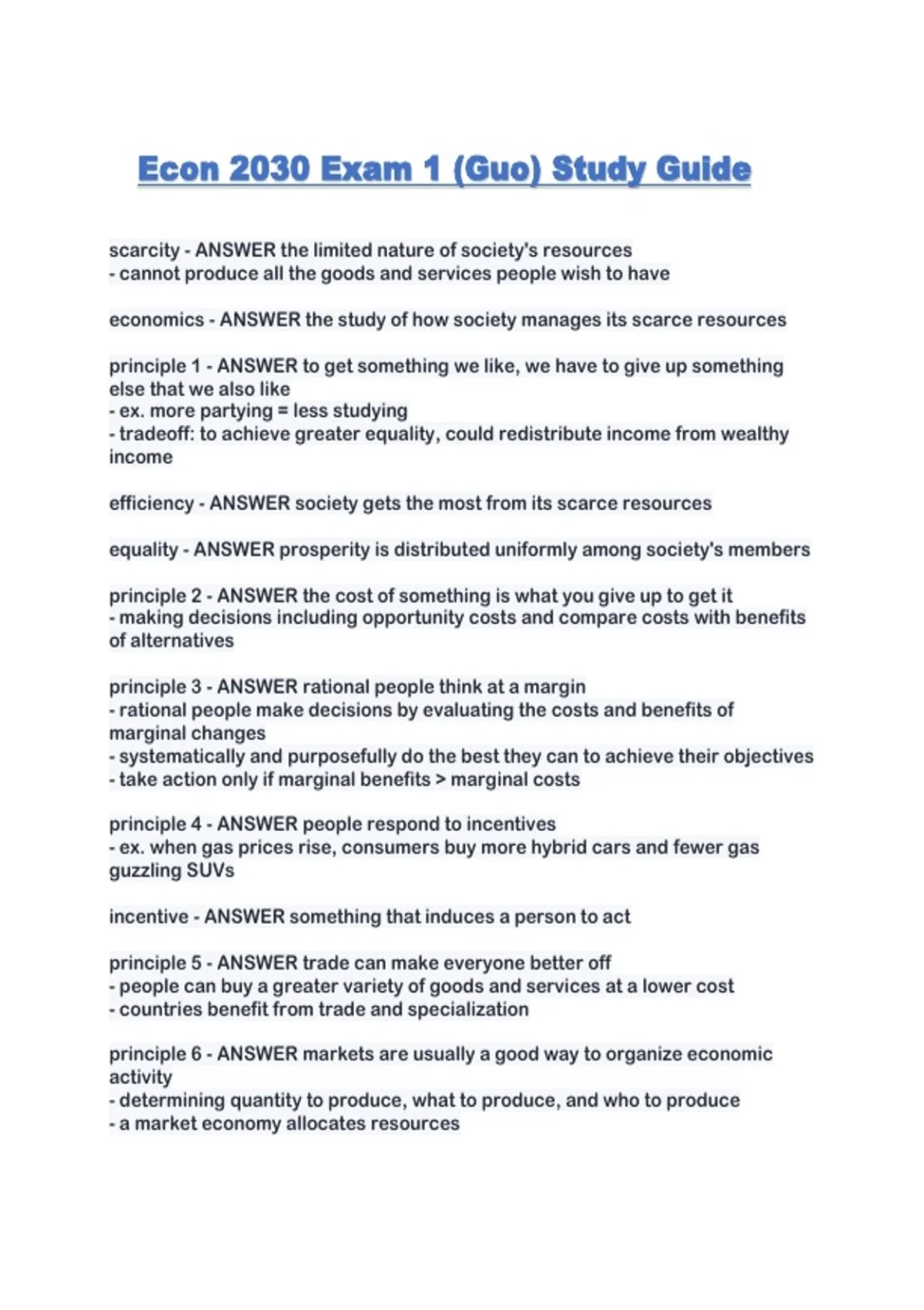 Econ 2030 Exam 1 (Guo) Study Guide