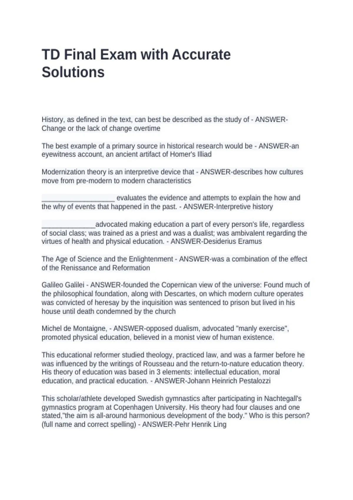 TD Final Exam with Accurate