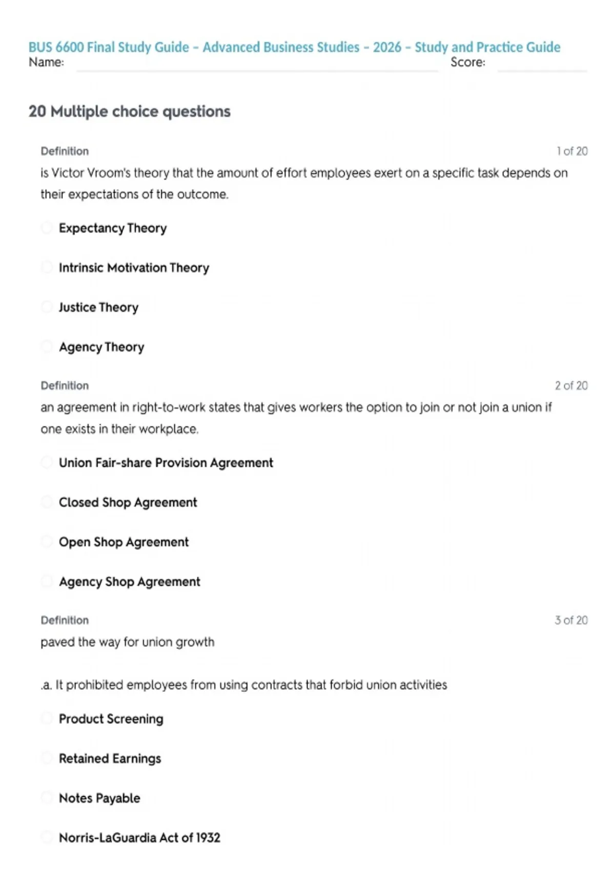 BUS 6600 Final Study Guide – Advanced Business Studies – 2026 – Study and Practice Guide