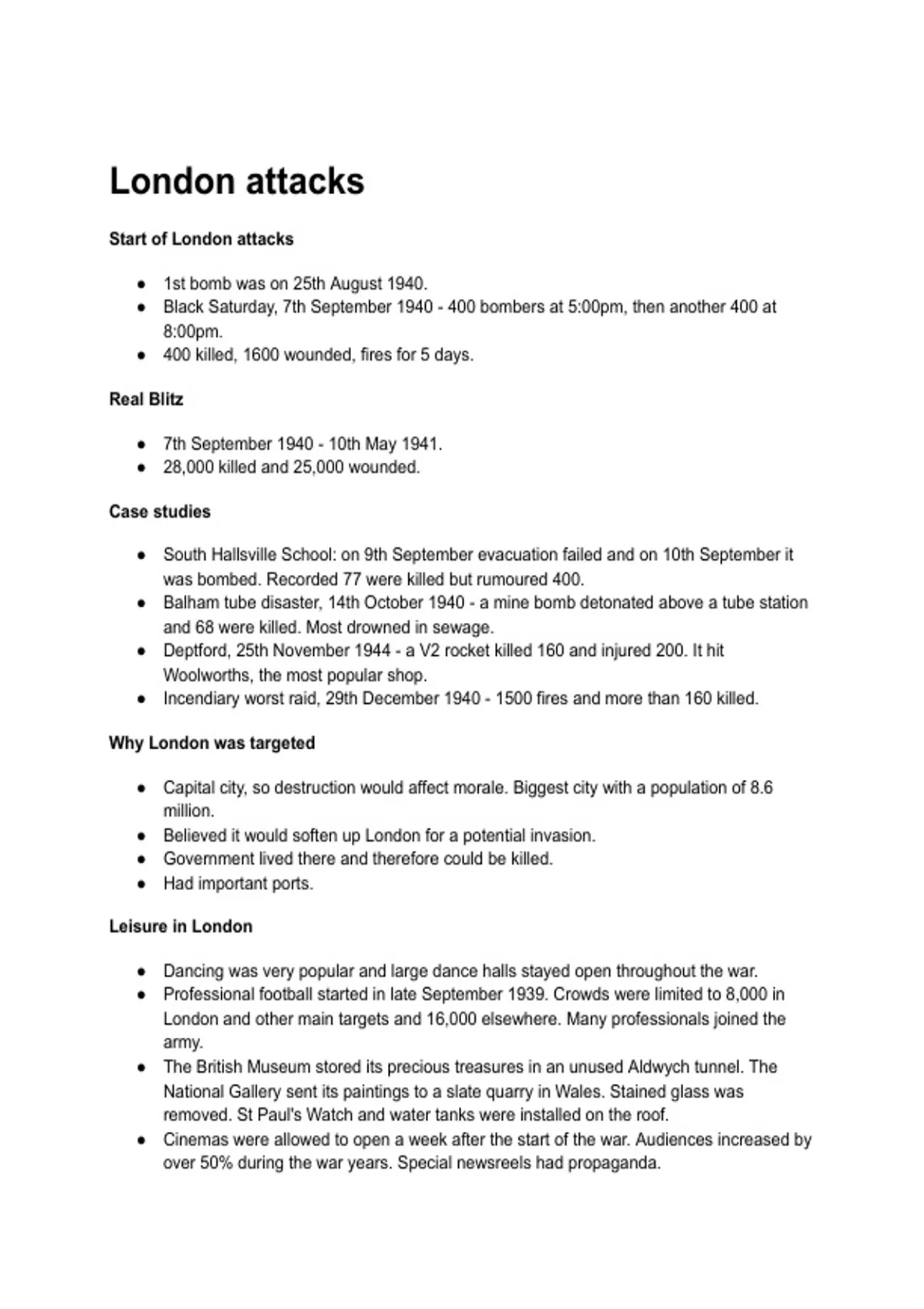 ● Households were offered Anderson shelters if they had a garden. People dug a hole and
