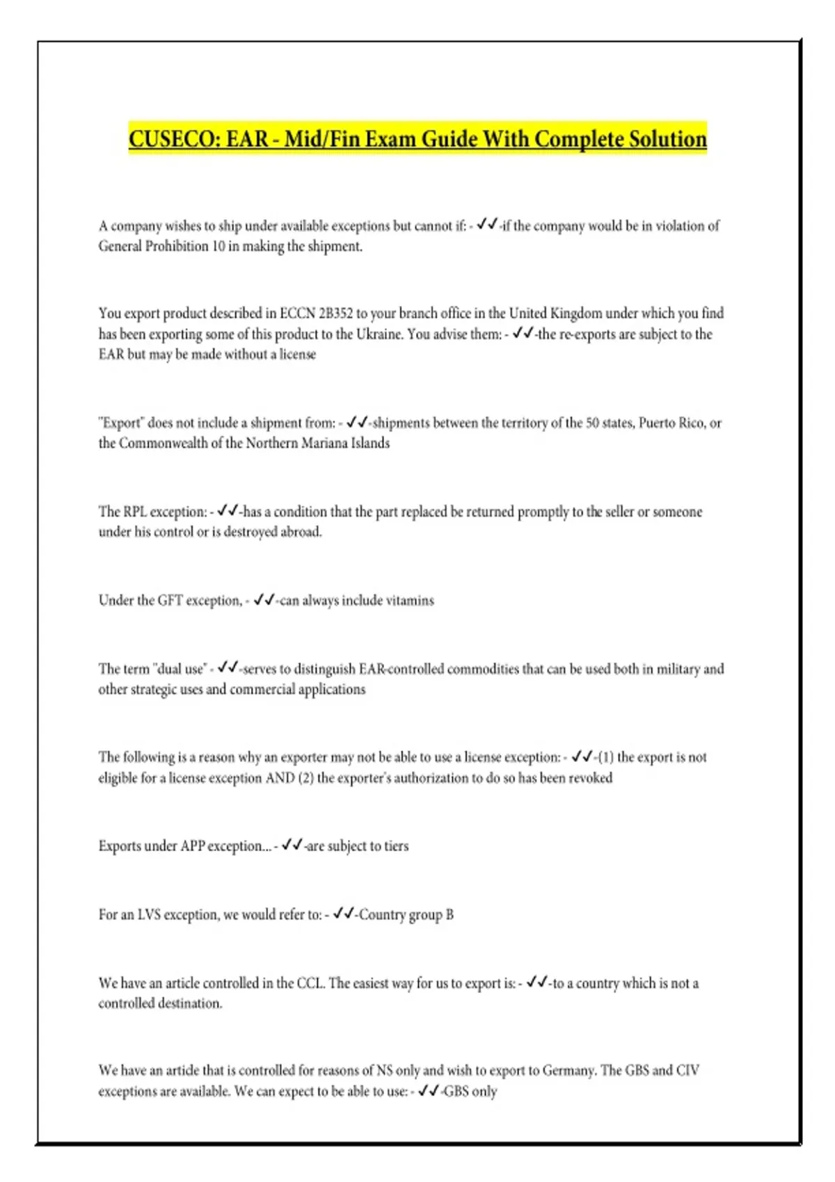 CUSECO - EAR - Mid-Fin Exam Guide With Complete Solution