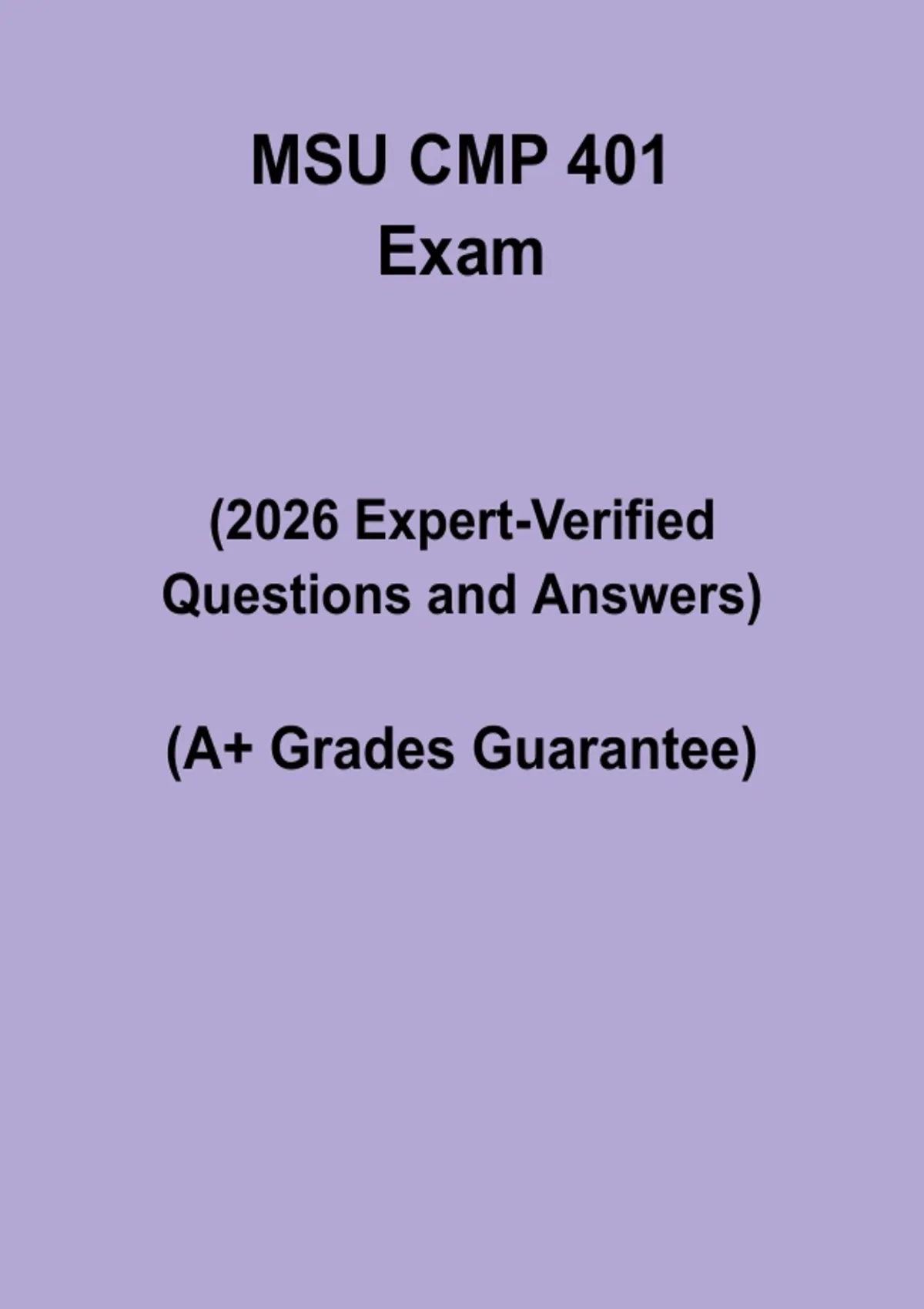 Prepare effectively for MSU CMP 401 with this complete study guide and exam prep resource. This document includes practice questions, verified answers, and clear explanations covering all key course concepts, theories, and applications. Perfect for Michigan State University students, it reinforces understanding, improves retention, and builds confidence to excel in CMP 401 assessments and exams.