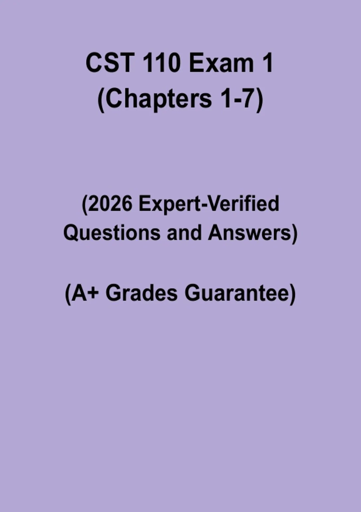 Prepare effectively for CST 110 Exam 1 covering Chapters 1–7 with this comprehensive study guide. This document includes practice questions, verified answers, and detailed explanations on key computer science concepts, programming fundamentals, and problem-solving techniques. Perfect for CST 110 students, it reinforces understanding, improves retention, and builds confidence to excel in the first exam.