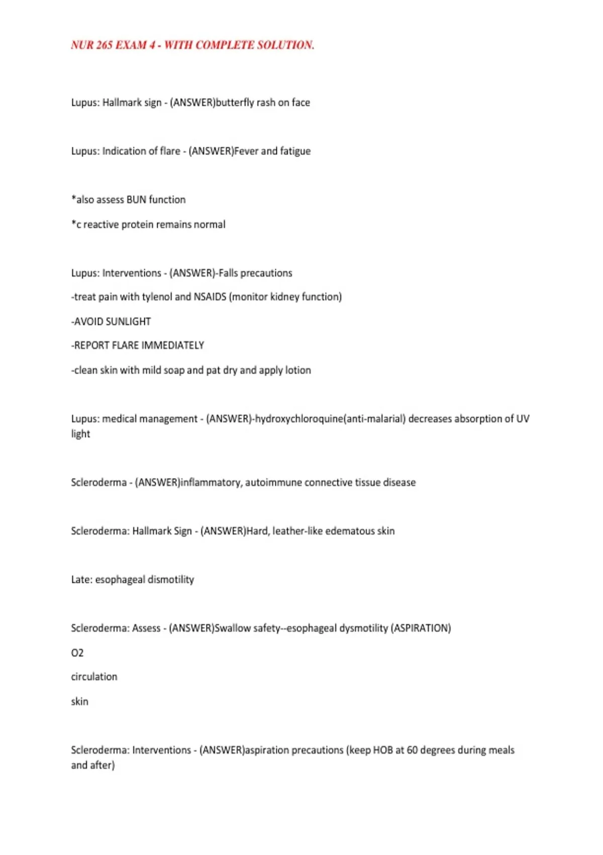 NUR 265 EXAM 4 - WITH COMPLETE SOLUTION.