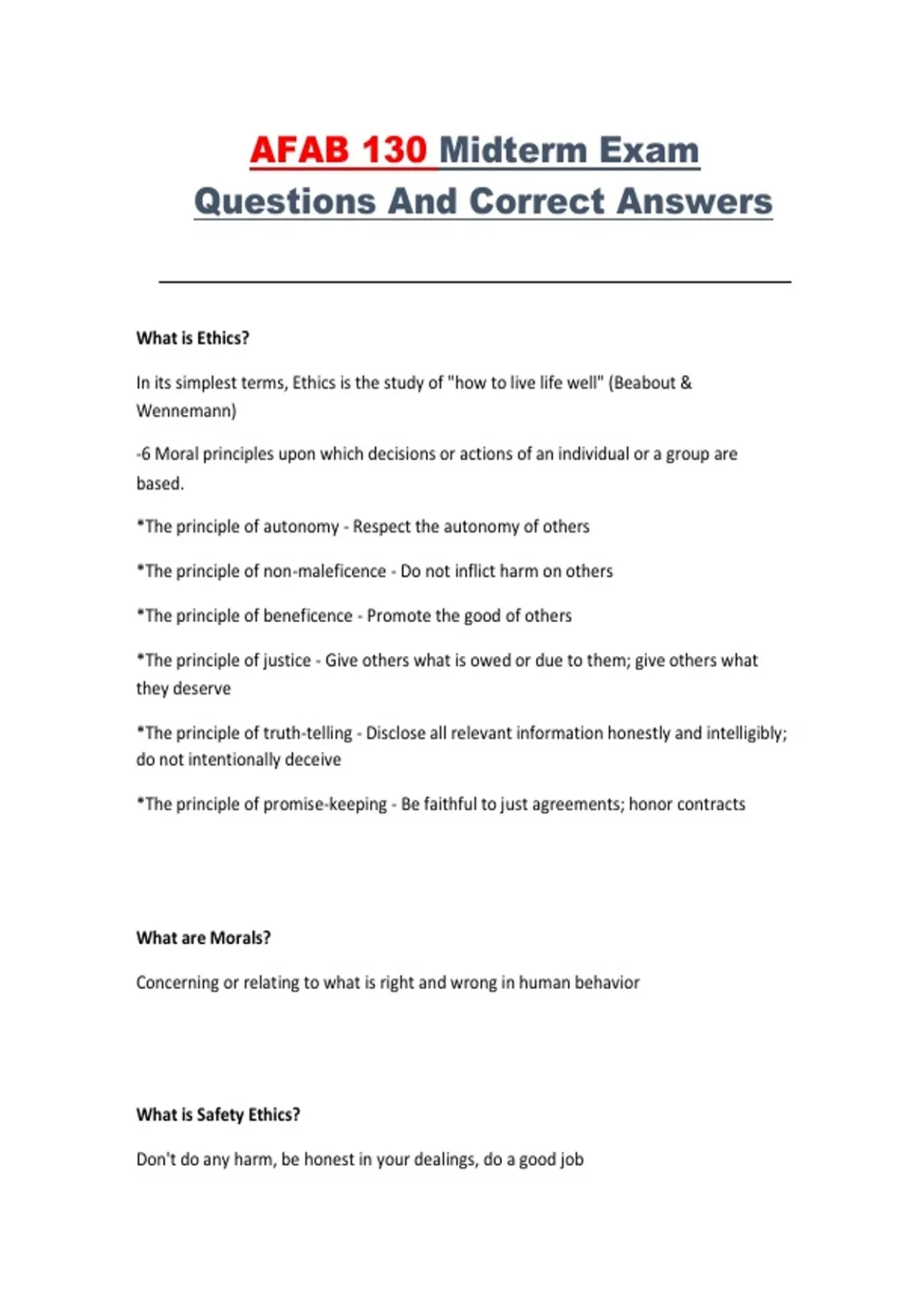 Questions And Correct Answers
