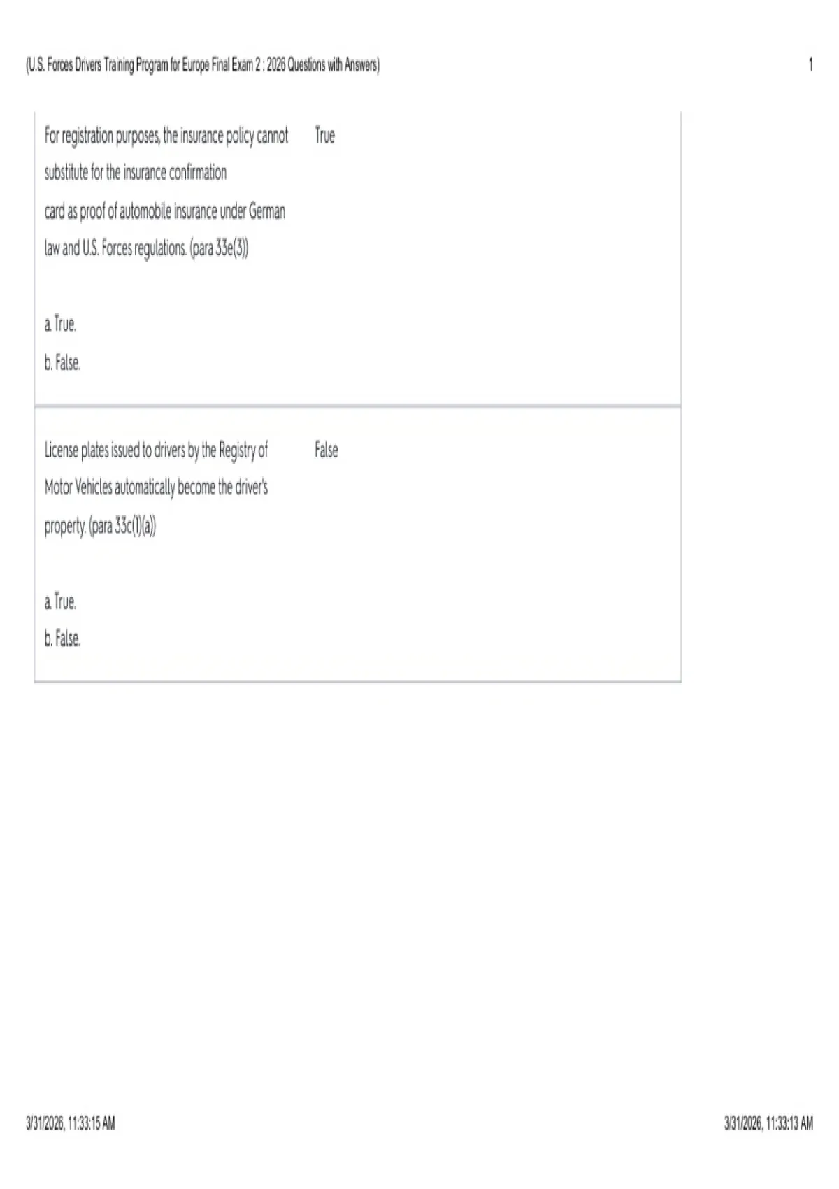 (U.S. Forces Drivers Training Program for Europe Final Exam 2 : 2026 Questions with Answers) 1