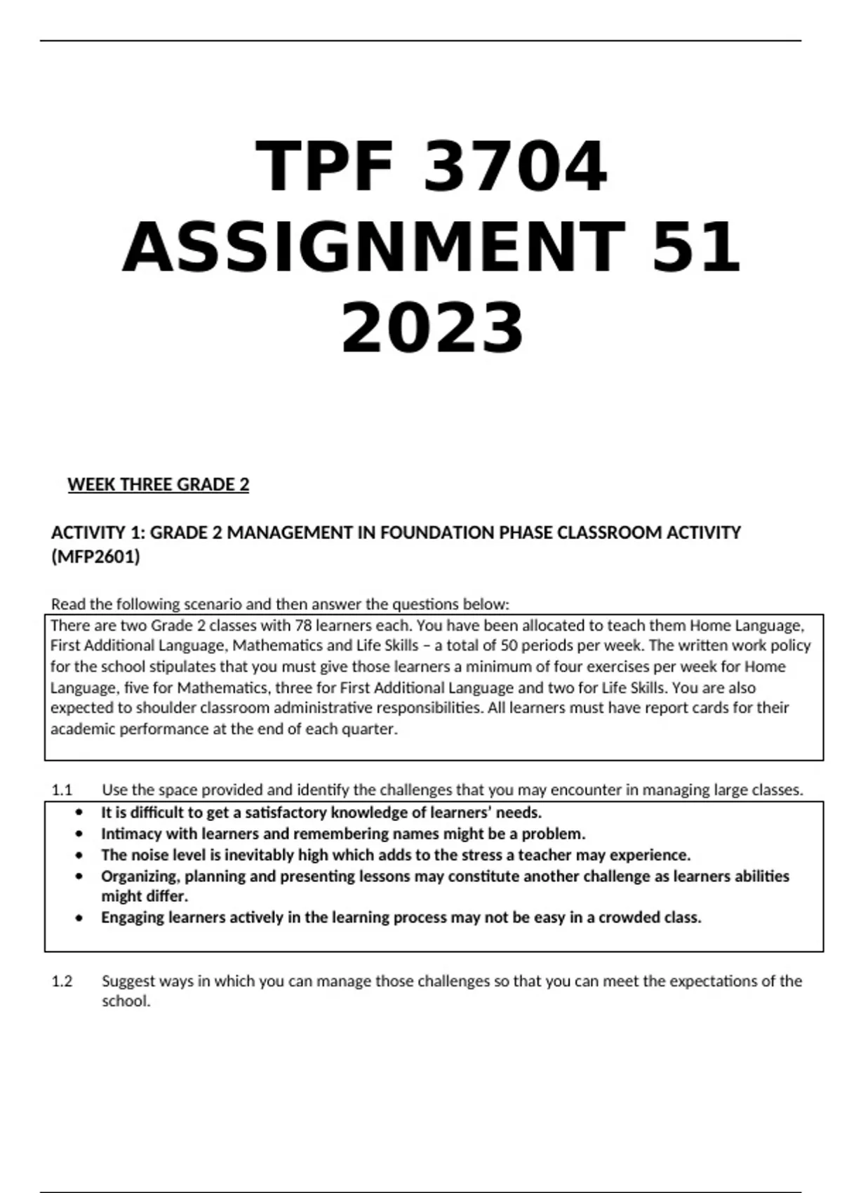 1.1 Use the space provided and identify the challenges that you may encounter in managing large classes.