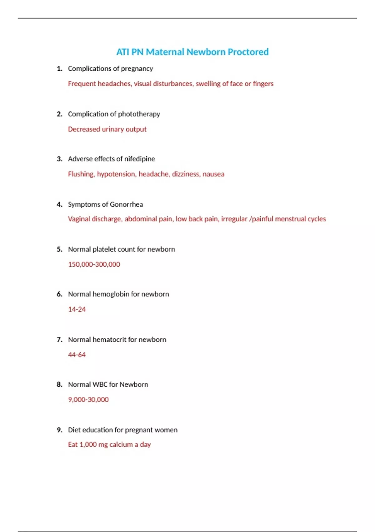 ATI PN Maternal Newborn Proctored Exam Study Guide