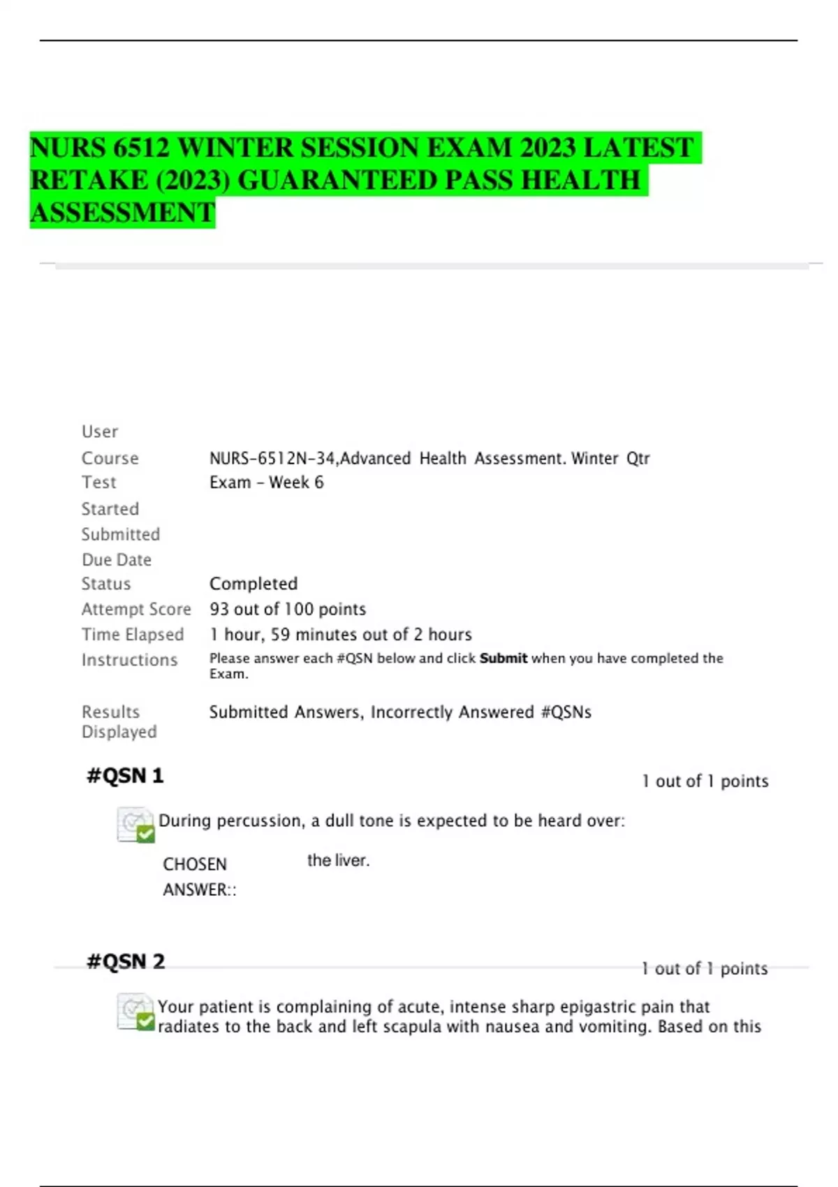NURS 6512 WINTER SESSION EXAM 2023 LATEST RETAKE (2023) GUARANTEED PASS HEALTH ASSESSMENT