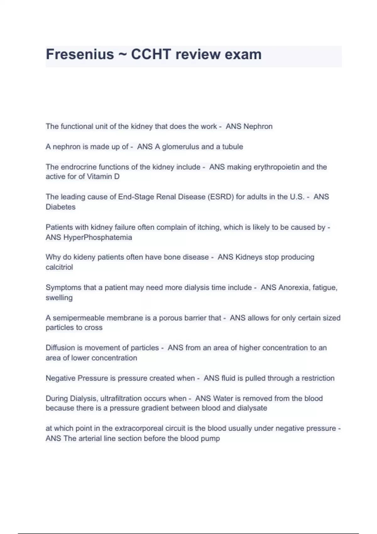fresenius ccht review exam questions amp answers 2023 a graded 100 verified