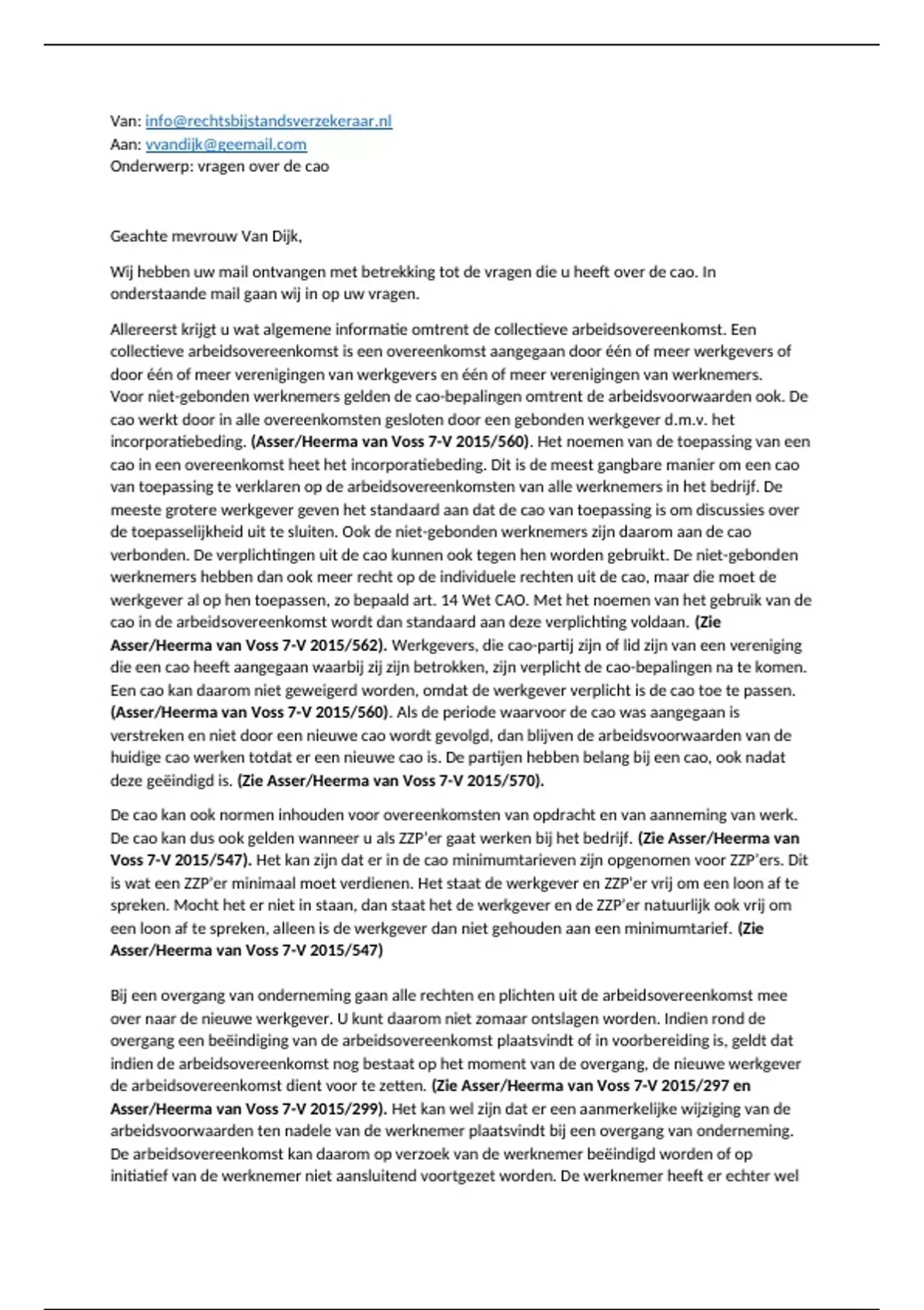 Wij hebben uw mail ontvangen met betrekking tot de vragen die u heeft over de cao. In