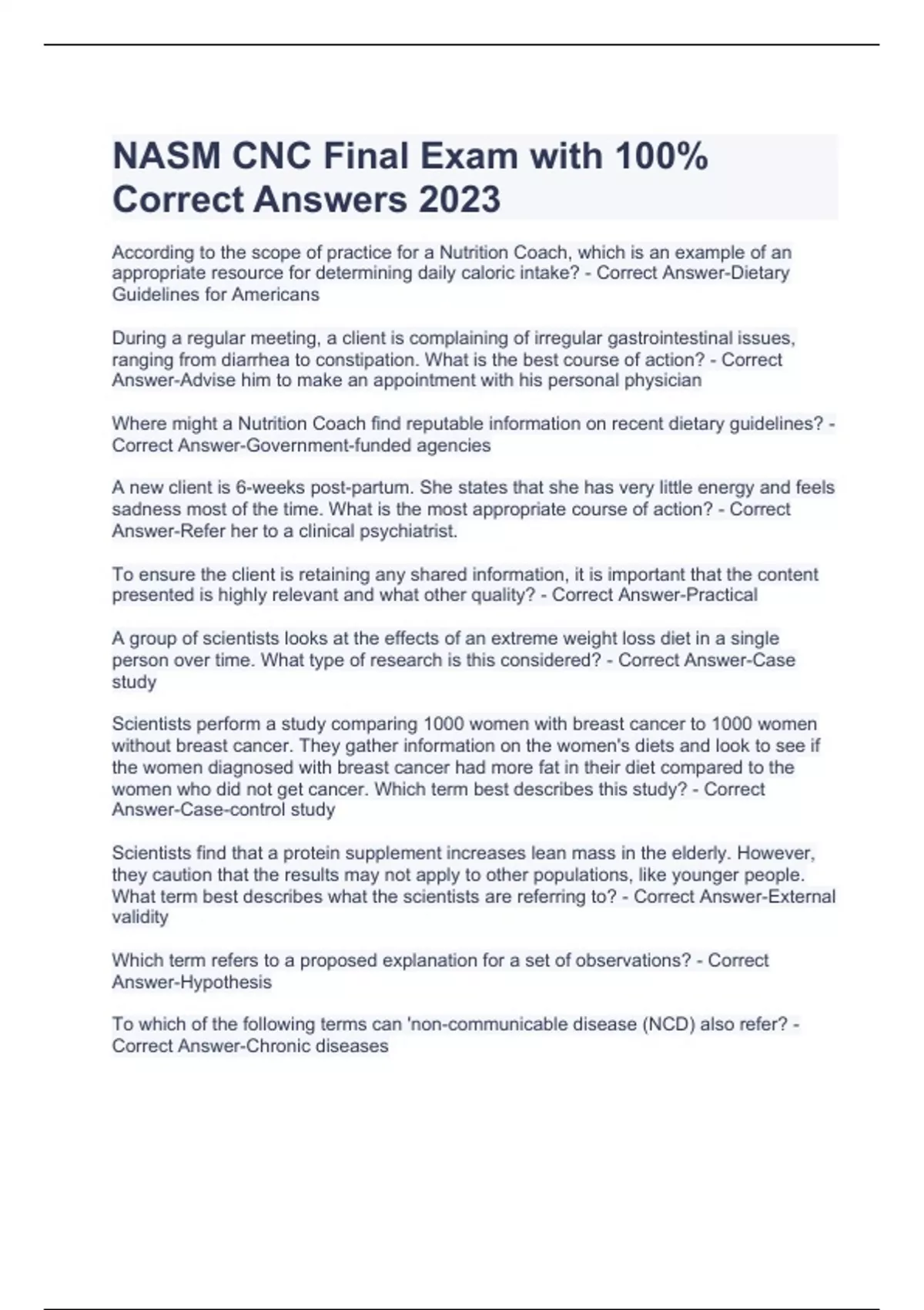 NASM CNC Final Exam with 100% Correct Answers 2023