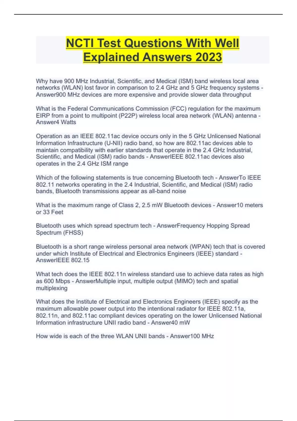 NCTI Test Questions With Well