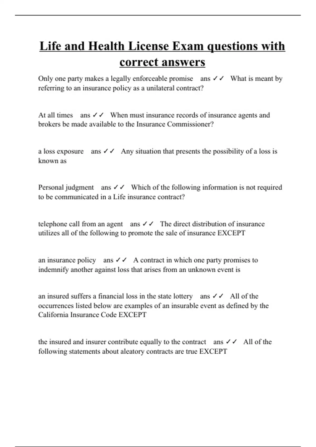 life and health license exam questions with correct answers