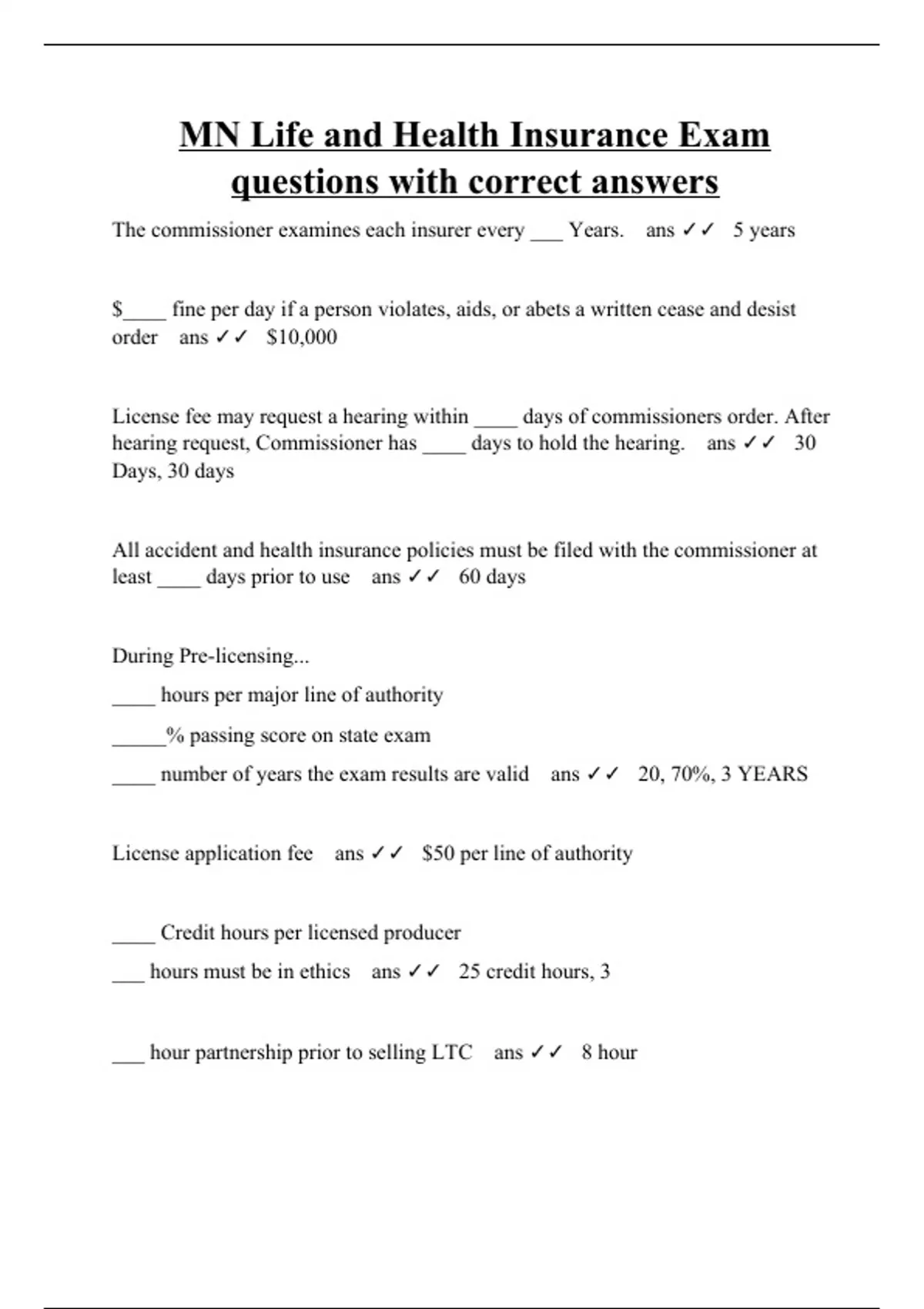 ___ hour partnership prior to selling LTC ans ✓✓ 8 hour ___ hour refresher course every two years after initial training for LTC ans ✓✓ 4 hours