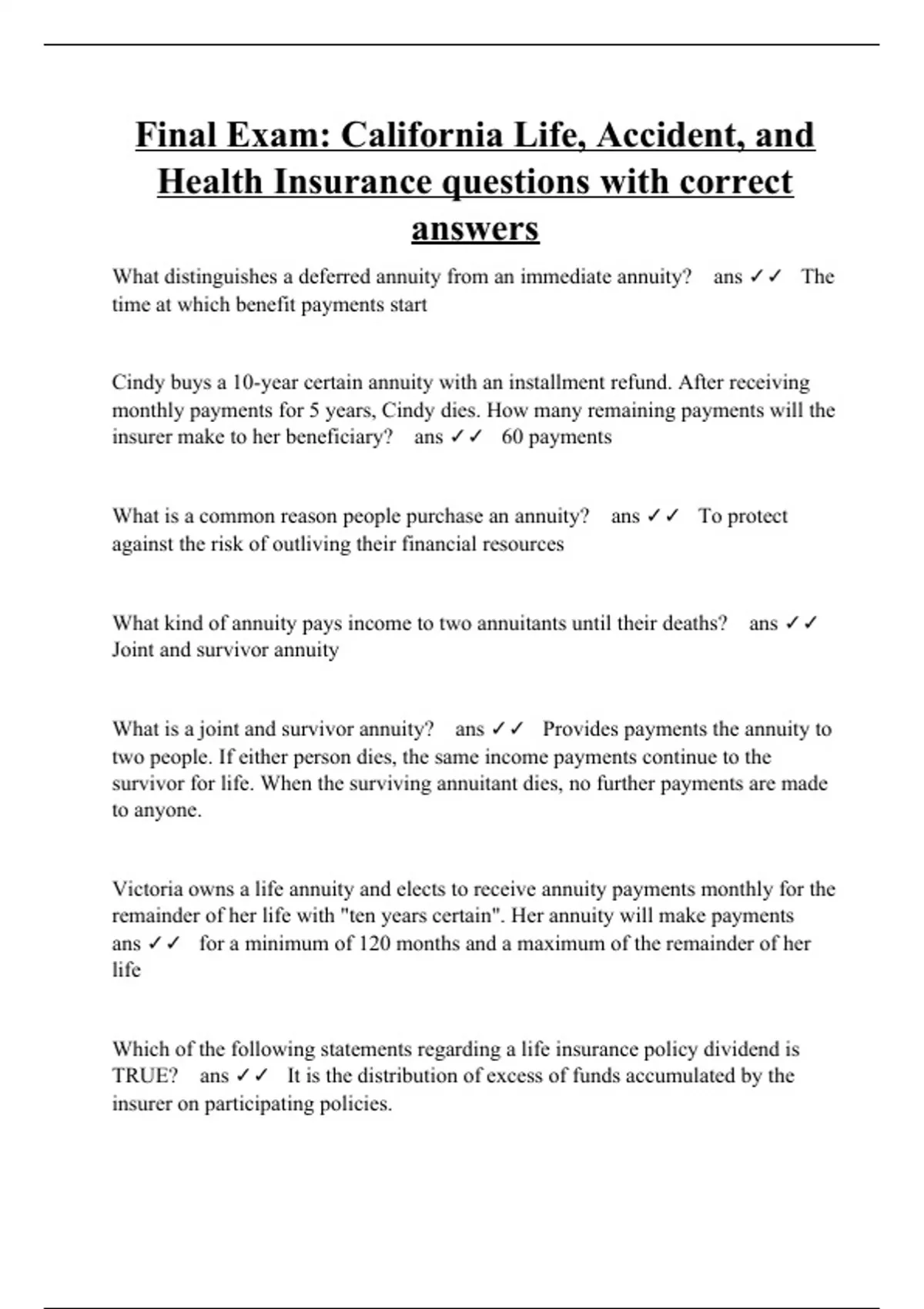 Final Exam: California Life, Accident, and Health Insurance questions with correct answers