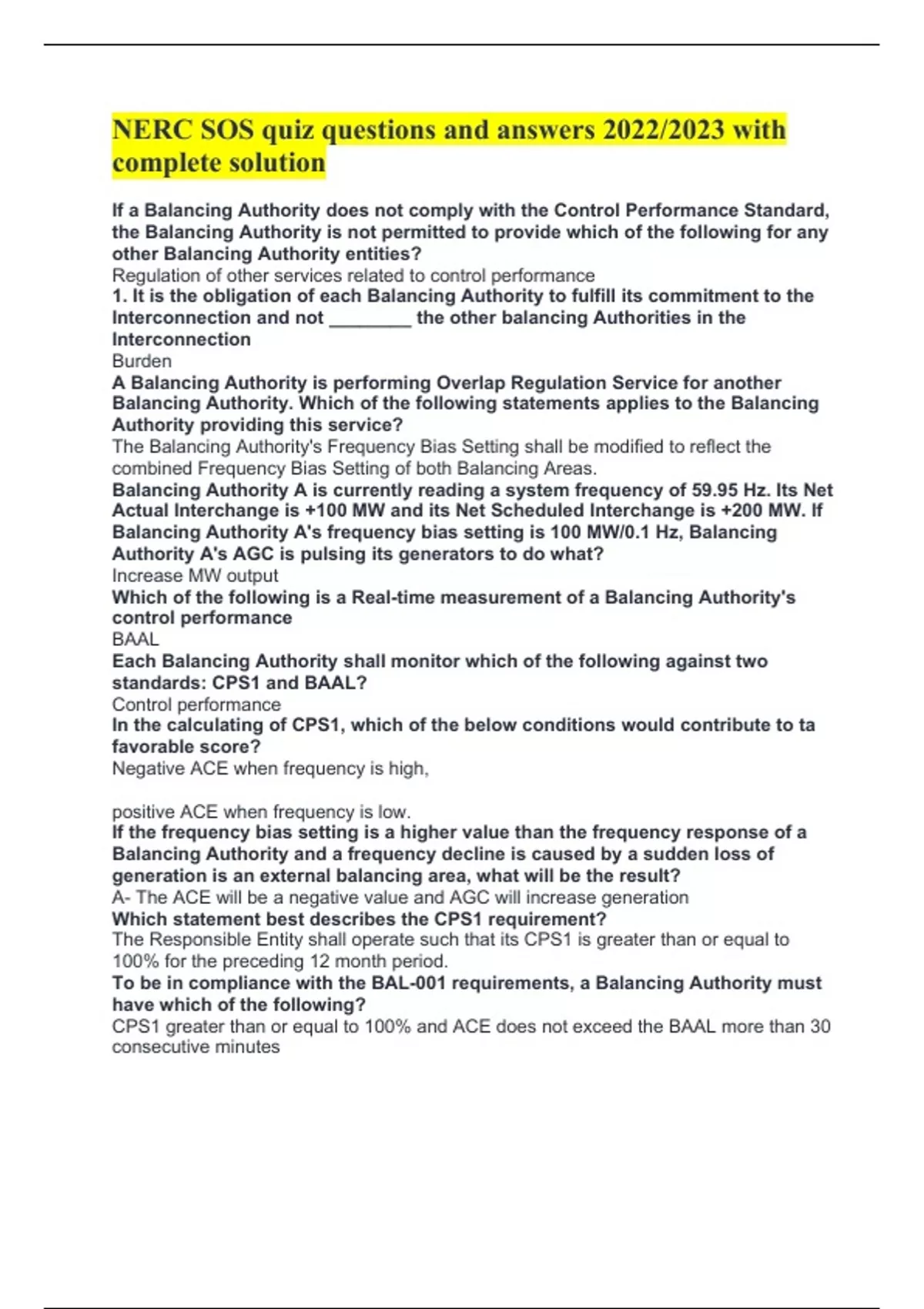 To be in compliance with the BAL-001 requirements, a Balancing Authority must