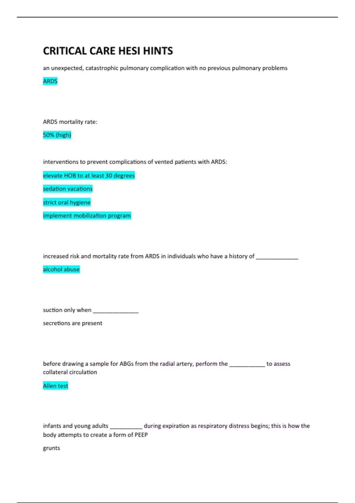 CRITICAL CARE HESI HINTS (100% Guaranteed Pass) 2022/2023