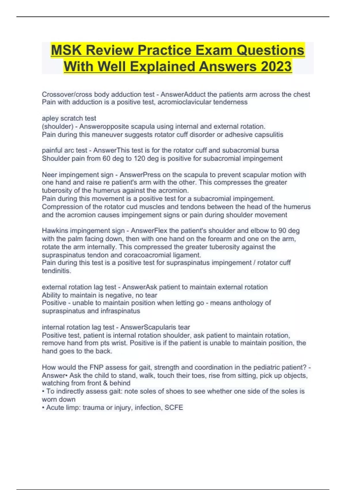 MSK Review Practice Exam Questions With Well Explained Answers 2023