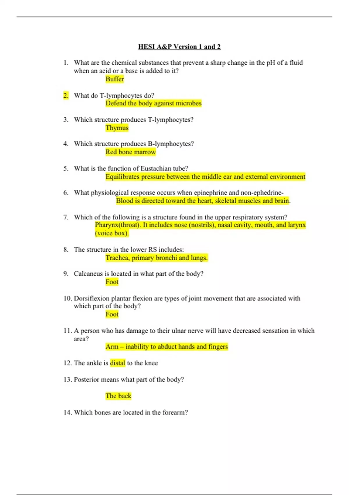 HESI A2 Anatomy and Physiology Questions & Answers