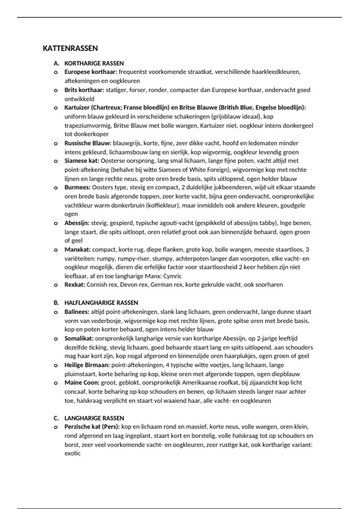 o Abessijn: stevig, gespierd, typische agouti-vacht (gespikkeld of abessijns tabby), lnge benen,
