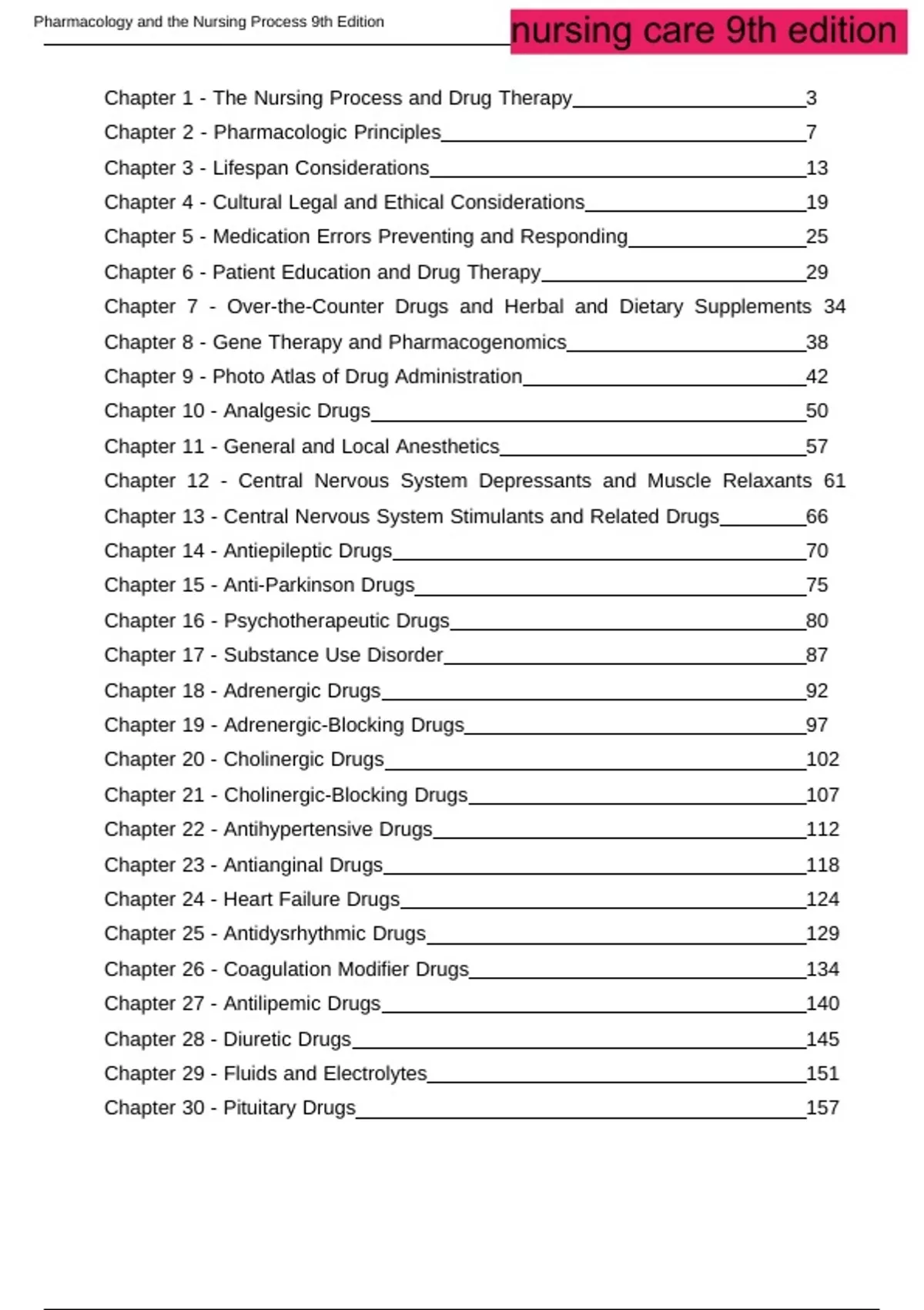 The nurse is developing a human needs statement for a patient who has a new diagnosis of heart failure. Identification of human needs statements occur with which of these activities? a. Collection of patient data b. Administering interventions c. Deciding on patient outcomes d. Documenting the patient’s behavior ANS: A Identification of human needs occurs with the collection of patient data. DIF: Cognitive Level: Understanding (Comprehension) TOP: Nursing Process: Human Needs Statement MSC: NCLEX: Safe and Effective Care Environment: Management of Care 2. The patient is to receive oral guaifenesin (Mucinex) twice a day. Today, the nurse was busy and gave the medication 2 hours after the scheduled dose was due. What type of problem does this represent? a. “Right time” b. “Right dose” c. “Right route” d. “Right medication” ANS: A “Right time” is correct because the medication was given more than 30 minutes after the scheduled dose was due. “Dose” is incorrect because the dose is not related to the time the medication administration is scheduled. “Route” is incorrect because the route is not affected. “Medication” is incorrect because the medication ordered will not change. DIF: Cognitive Level: Applying (Application) TOP: Nursing Process: Implementation MSC: NCLEX: Safe and Effective Care Environment: Safety and Infection Control 3. The nurse has been monitoring the patient’s progress on a new drug regimen since the first dose and documenting the patient’s therapeutic response to the medication. Which phase of the nursing process do these actions illustrate? a. Human needs statement b. Planning c. Implementation d. Evaluation ANS: D Monitoring the patient’s progress, including the patient’s response to the medication, is part of the evaluation phase. Planning, implementation, and human needs statement are not illustrated by this example. Chapter 1 - The Nursing Process and Drug Therapy 3 DIF: Cognitive Level: Understanding (Comprehension) TOP: Nursing Process: Evaluation MSC: NCLEX: Safe and Effective Care Environment: Management of Care 4. The nurse is assigned to a patient who is newly diagnosed with type 1 diabetes mellitus. Which statement best illustrates an outcome criterion for this patient? a. The patient will follow instructions. b. The patient will not experience complications. c. The patient will adhere to the new insulin treatment regimen. d. The patient will demonstrate correct blood glucose testing technique. ANS: D “Demonstrating correct blood glucose testing technique” is a specific and measurable outcome criterion. “Following instructions” and “not experiencing complications” are not specific criteria. “Adhering to new regimen” would be difficult to measure. DIF: Cognitive Level: Applying (Application) TOP: Nursing Process: Planning MSC: NCLEX: Safe and Effective Care Environment: Management of Care 5. Which activity best reflects the implementation phase of the nursing process for the patient who is newly diagnosed with hypertension? a. Providing education on keeping a journal of blood pressure readings b. Setting goals and outcome criteria with the patient’s input c. Recording a drug history regarding over-the-counter medications used at home d. Formulating human needs statements regarding insufficient knowledge related to the new treatment regimen ANS: A Education is an intervention that occurs during the implementation phase. Setting goals and outcomes reflects the planning phase. Recording a drug history reflects the assessment phase. Formulating human needs statements reflects analysis of data as part of planning. DIF: Cognitive Level: Applying (Application) TOP: Nursing Process: Implementation MSC: NCLEX: Safe and Effective Care Environment: Management of Care 6. The medication order reads, “Give ondansetron (Zofran) 4 mg, 30 minutes before beginning chemotherapy to prevent nausea.” The nurse notes that the route is missing from the order. What is the nurse’s best action? a. Give the medication intravenously because the patient might vomit. b. Give the medication orally because the tablets are available in 4-mg doses. c. Contact the prescriber to clarify the route of the medication ordered. d. Hold the medication until the prescriber returns to make rounds. ANS: C A complete medication order includes the route of administration. If a medication order does not include the route, the nurse must ask the prescriber to clarify it. The intravenous and oral routes are not interchangeable. Holding the medication until the prescriber returns would mean that the patient would not receive a needed medication. DIF: Cognitive Level: Applying (Application) Chapter 1 - The Nursing Process and Drug Therapy 4 TOP: Nursing Process: Implementation MSC: NCLEX: Safe and Effective Care Environment: Management of Care 7. When the nurse considers the timing of a drug dose, which factor is appropriate to consider when deciding when to give a drug? a. The patient’s ability to swallow b. The patient’s height c. The patient’s last meal d. The patient’s allergies ANS: C The nurse must consider specific pharmacokinetic/pharmacodynamic drug properties that may be affected by the timing of the last meal. The patient’s ability to swallow, height, and allergies are not factors to consider regarding the timing of the drug’s administration. DIF: Cognitive Level: Understanding (Comprehension) TOP: Nursing Process: Assessment MSC: NCLEX: Safe and Effective Care Environment: Management of Care 8. The nurse is performing an assessment of a newly admitted patient. Which is an example of subjective data? a. Blood pressure 158/96 mm Hg b. Weight 255 pounds c. The patient reports that he uses the herbal product ginkgo. d. The patient’s complete blood count results. ANS: C Subjective data include information shared through the spoken word by any reliable source, such as the patient. Objective data may be defined as any information 