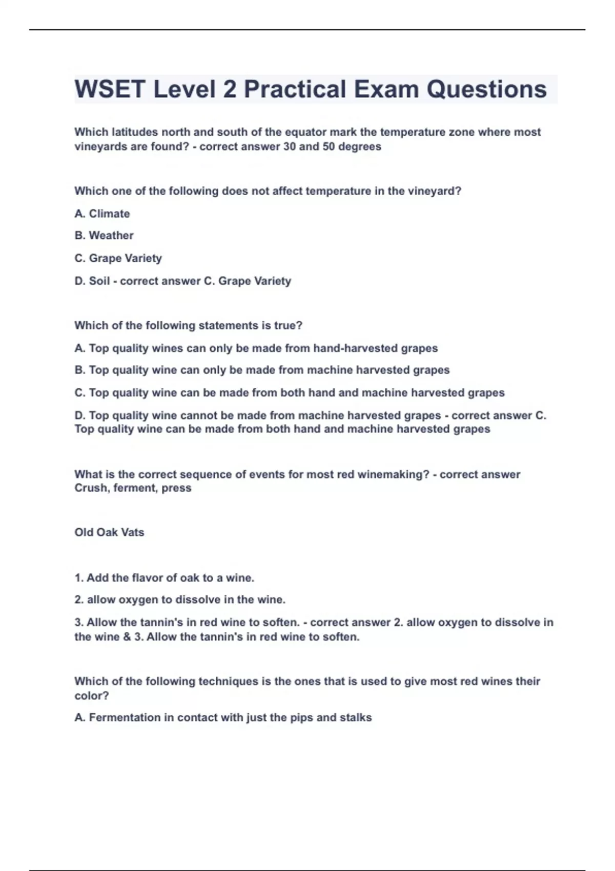 wset level 2 practical exam questions|2023 latest update|guaranteed success