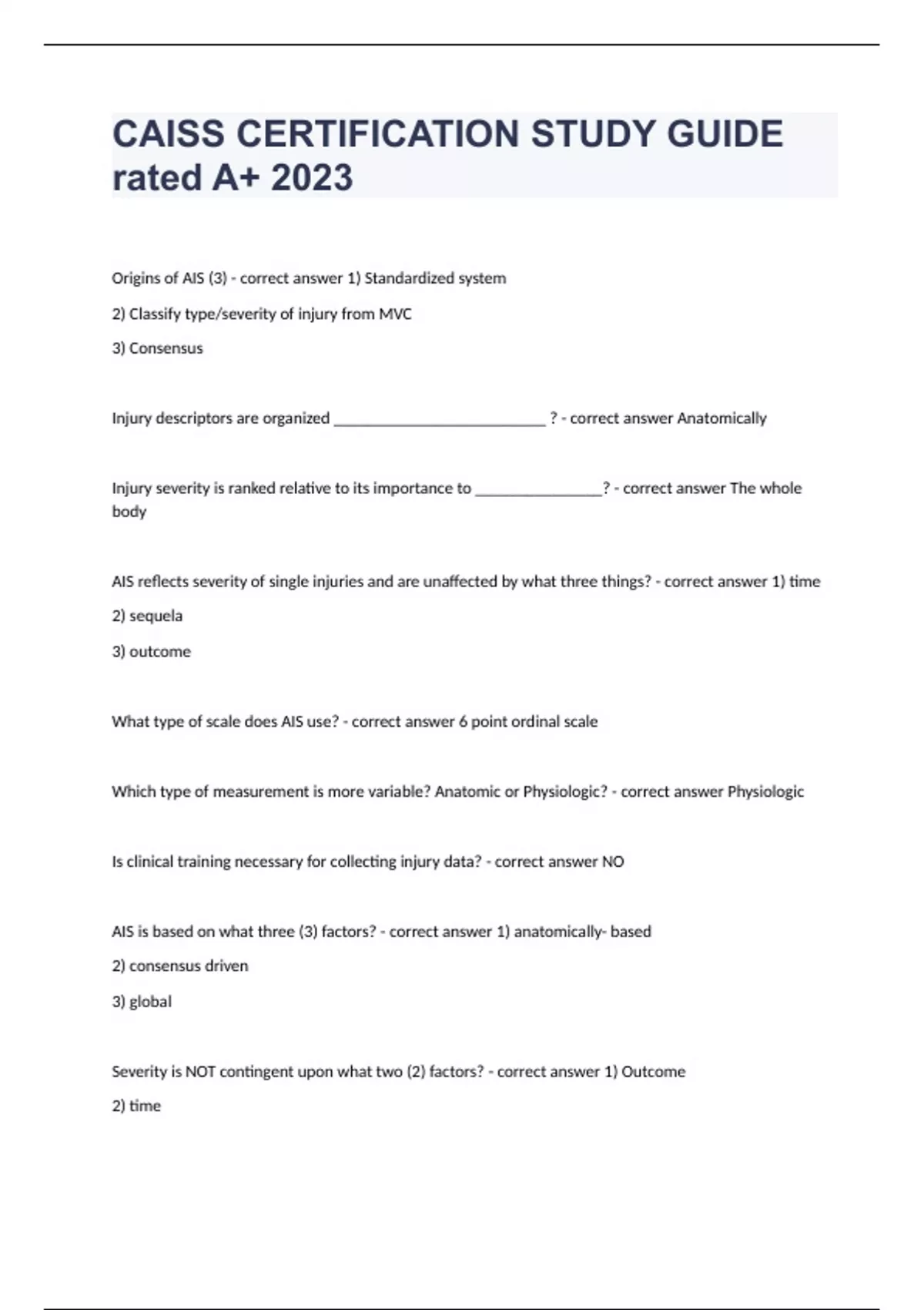AIS is based on what three (3) factors? - correct answer 1) anatomically- based
