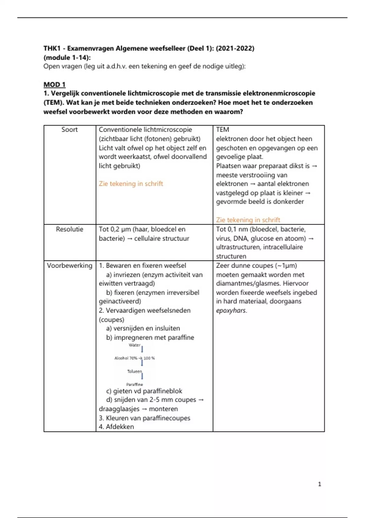THK1 - Examenvragen Algemene weefselleer (Deel 1): (2021-2022)