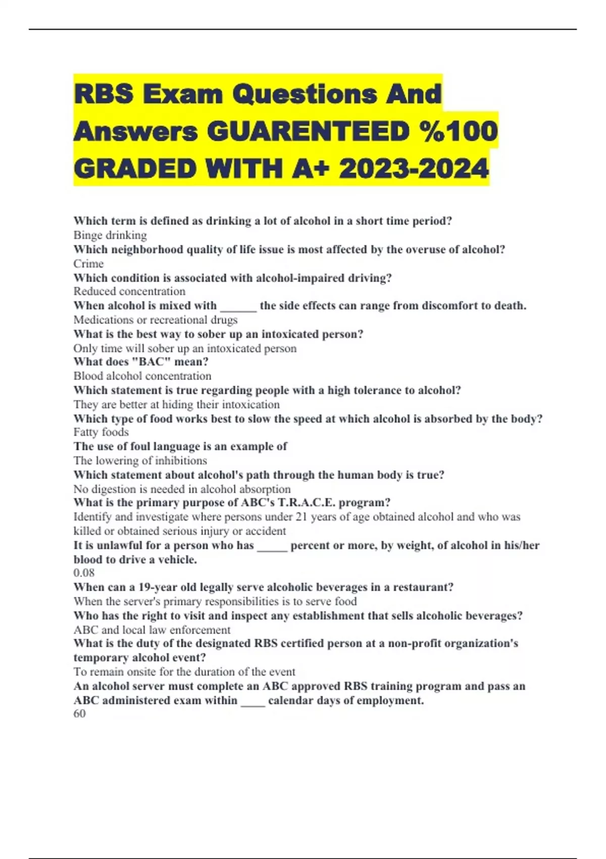 RBS Exam Questions And Answers GUARENTEED %100 GRADED WITH A+