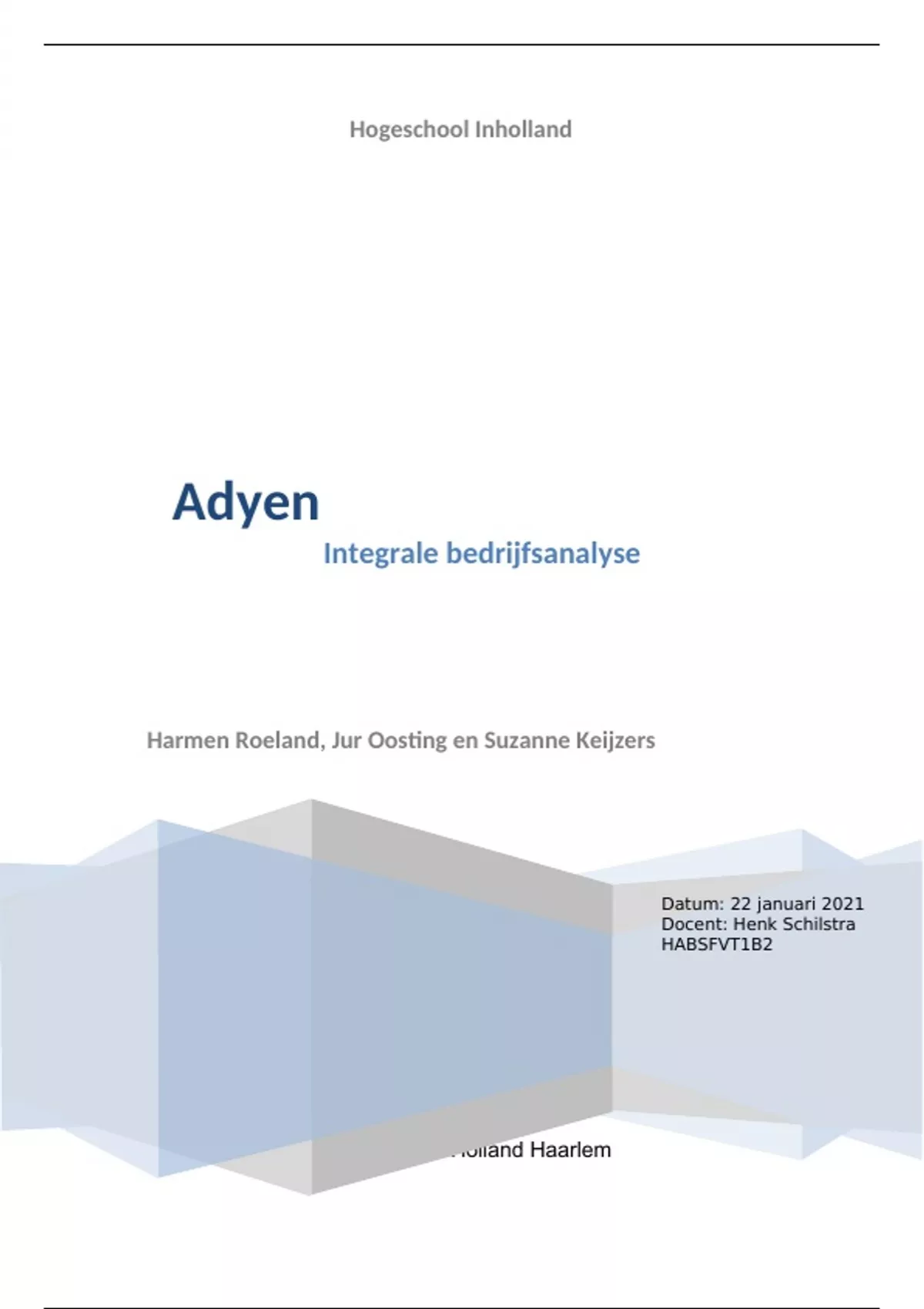 Dit rapport bevat de integrale bedrijfsanalyse van het bedrijf Adyen.