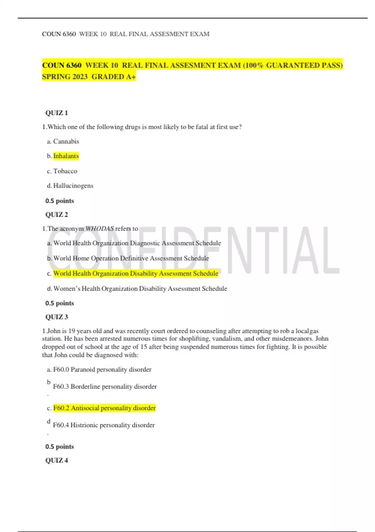 COUN 6360 WEEK 10 REAL FINAL ASSESMENT EXAM (100% GUARANTEED PASS) SPRING 2023 GRADED A+