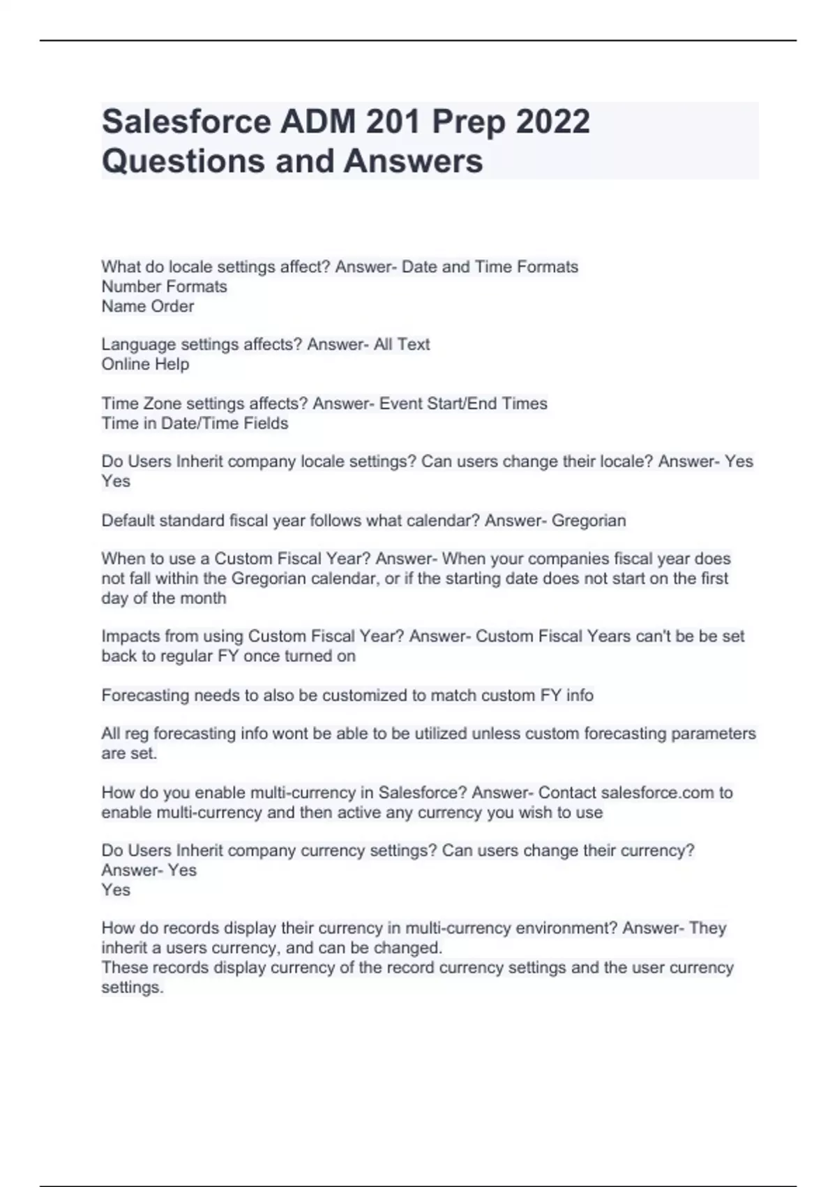 Salesforce ADM 201 Prep 2022 Questions and Answers