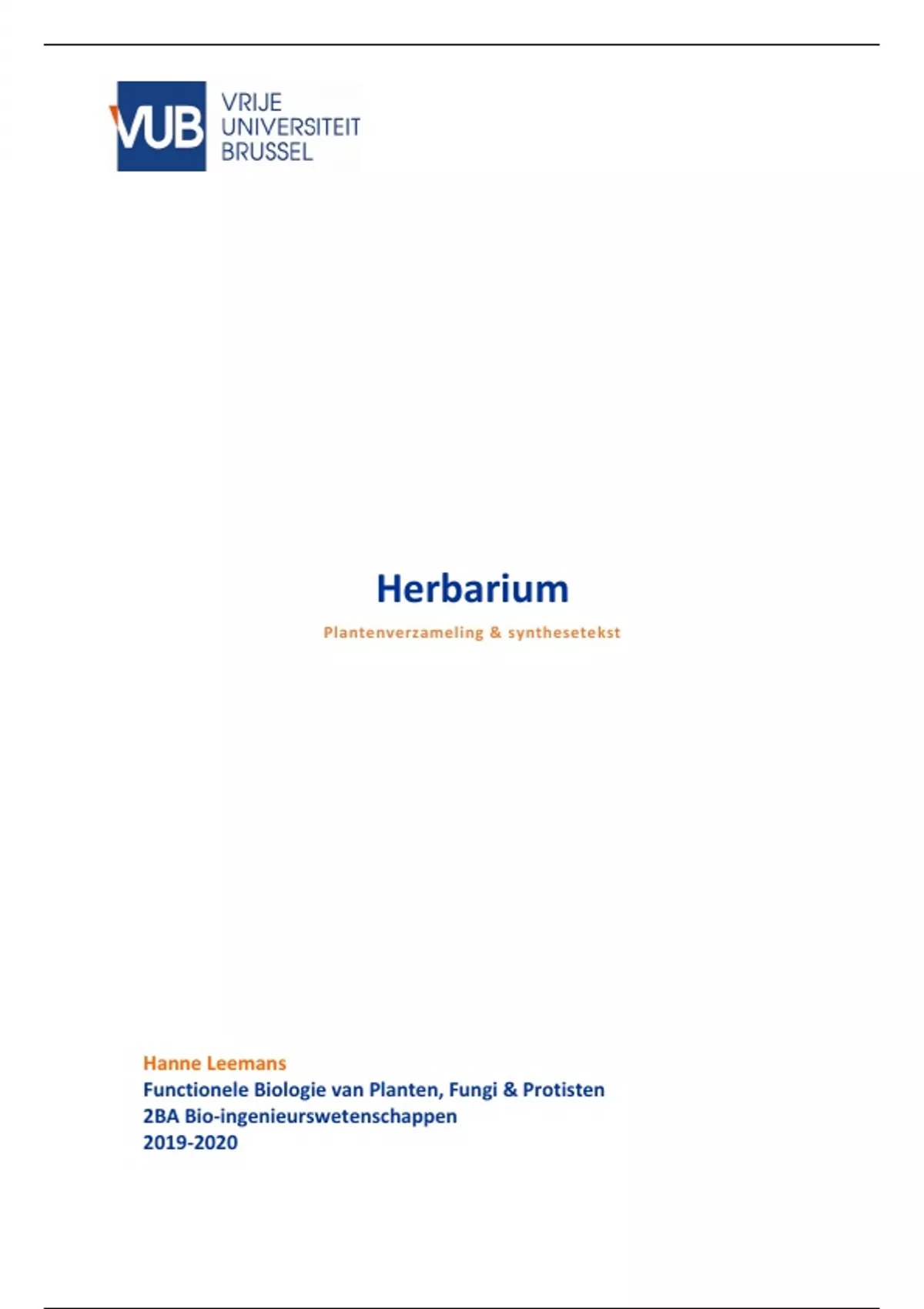 ,Ik, Hanne Leemans, verklaar hierbij op eer dat dit herbarium in het kader van het vak Functionele biologie