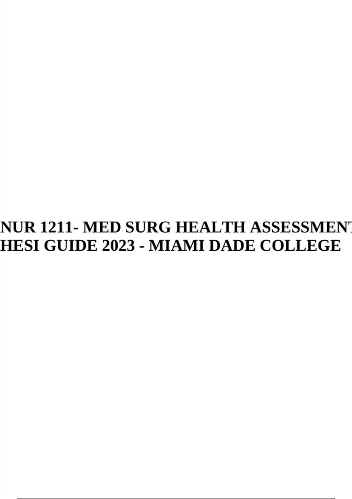 NUR 1211- MED SURG HEALTH ASSESSMENT HESI GUIDE 2023 - MIAMI DADE COLLEGE.