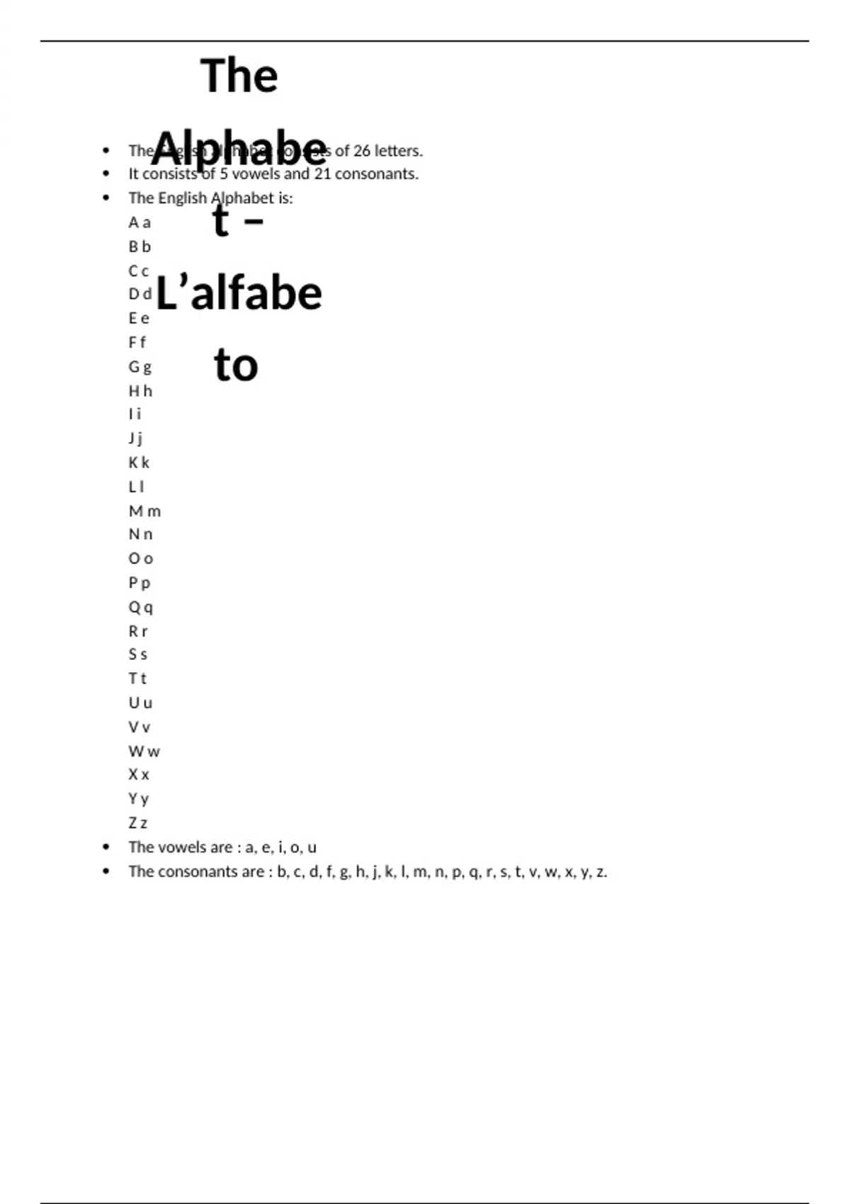  The consonants are : b, c, d, f, g, h, j, k, l, m, n, p, q, r, s, t, v, w, x, y, z.