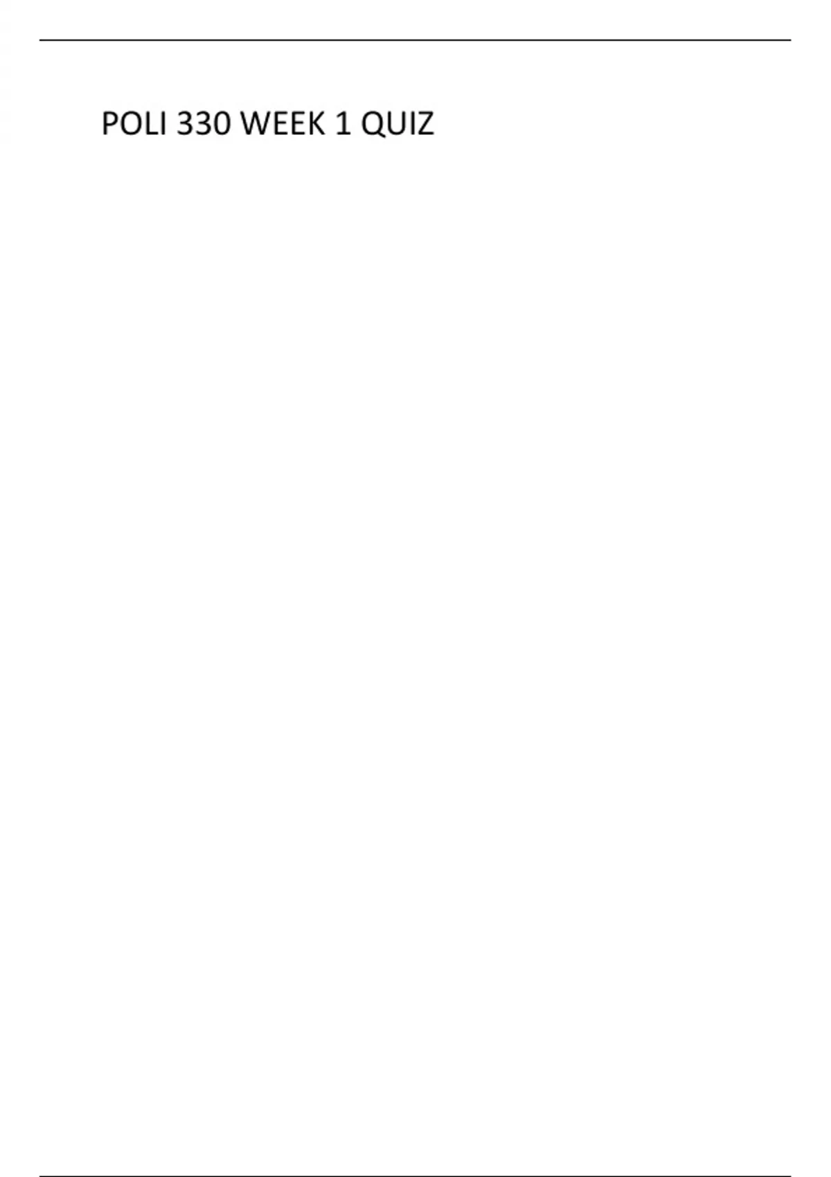 POLI 330 WEEK 1 QUIZ WITH COMPLETE VERIFIED SOLUTIONS. POLI 330 WEEK 1 QUIZ WITH COMPLETE VERIFIED SOLUTIONS. POLI 330 WEEK 1 QUIZ WITH COMPLETE VERIFIED SOLUTIONS.