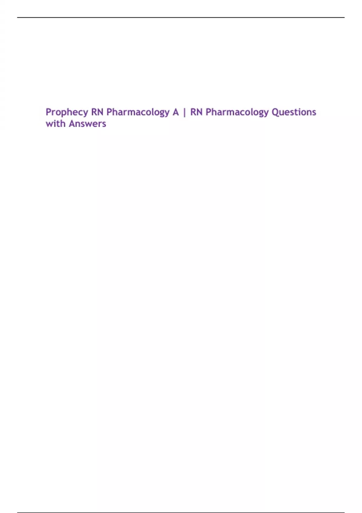 Prophecy RN Pharmacology A | RN Pharmacology Questions with Answers